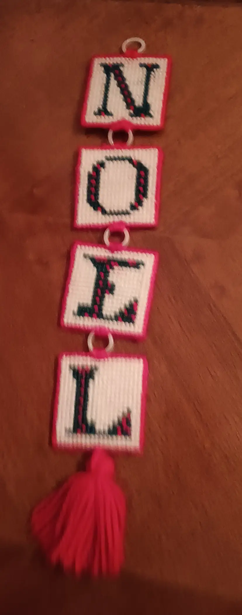 The Vintage NOEL Needlepoint Plastic Canvas Banner is a handmade Christmas decoration featuring a traditional holiday message. Made from durable plastic material, this unique banner is perfect for adding a nostalgic touch to your holiday decor. The detailed needlepoint design adds a personal and charming element to your seasonal display, making it a special addition to your Christmas traditions.