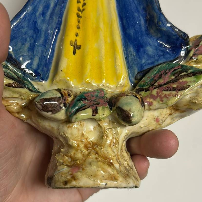 Does have a few chips and one small crack, looks Italian to me but it isn’t signed. Definitely has age to it. Height is 8 width is 5 1/2