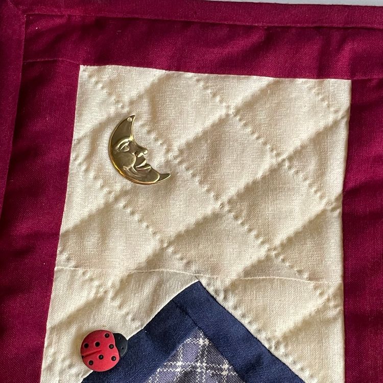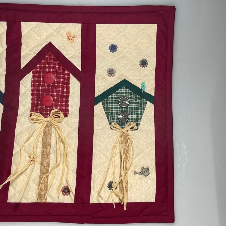 Very Good Preowned - subtle signs of wear or use. Has a rod pocket sewn in back for hanging.
