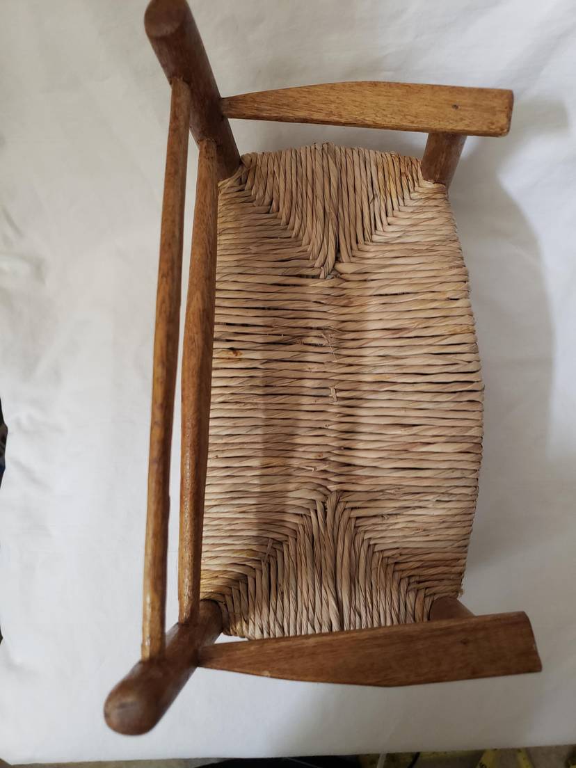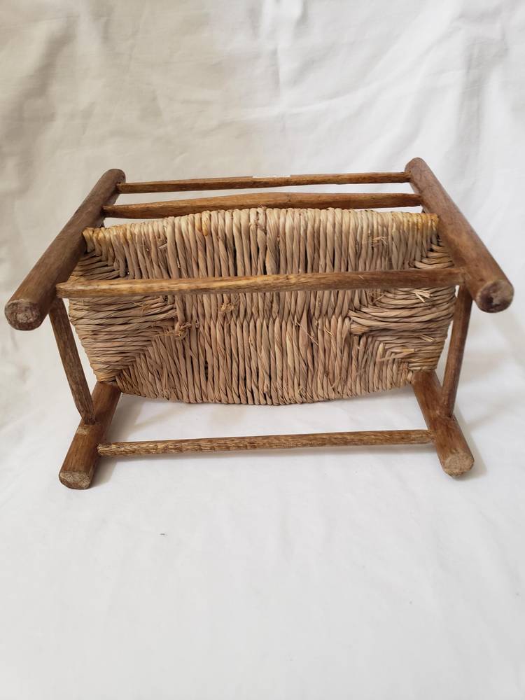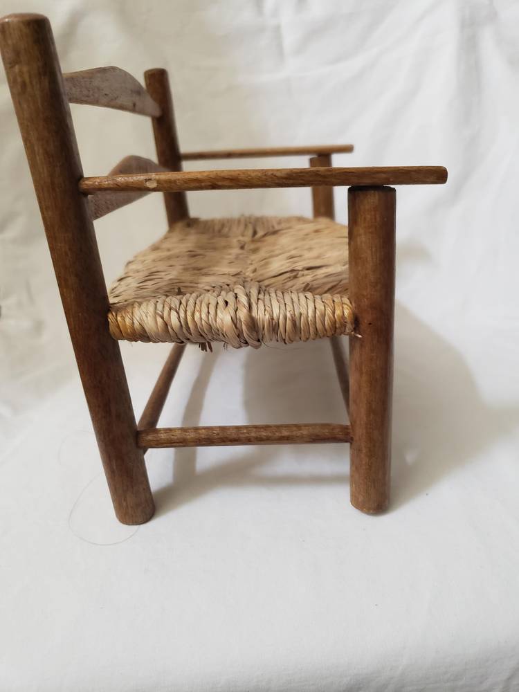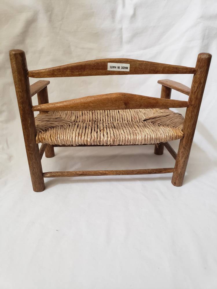 Handmade rustic wooden doll bench made in Haiti. Bench measures approximately 7" high ,8" wide and 5" deep.