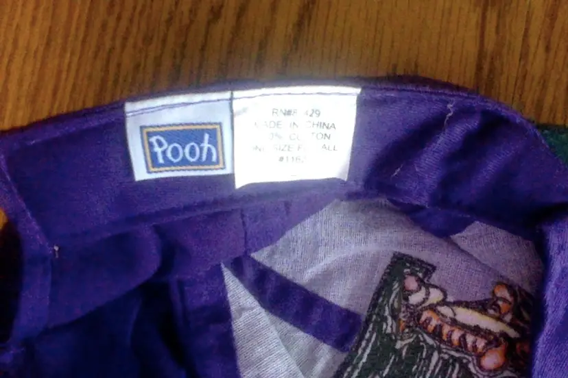 Vintage Purple Tigger Ball Cap $8. Outside features an embroidery capital "T" and a Tigger patch. [Winnie the Pooh]. The brim is hunter green, as is the top seam button. The sizer is an elasticized band that adjusts to fit most youth and small adults. The inside brim measures approx. 21in. Tag is a licensed Pooh by Disney. Made in China 1998. Please see my other listings. Multiple purchase discounts. Monitor 8PM nightly. (not 24/7)