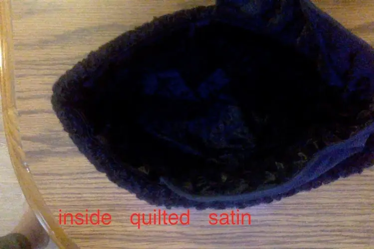 Vintage Black Shearling Lamb's Wool Hat. $8. Outside features soft swirls of shearling lamb's woodl and 2 1/2in. fold-up cuff. Inside features quilted satin lining and fold-down ear flaps. Is pristine and fresh; soft and luxurious. The inside band measures approx. 24in. (no maker tag)