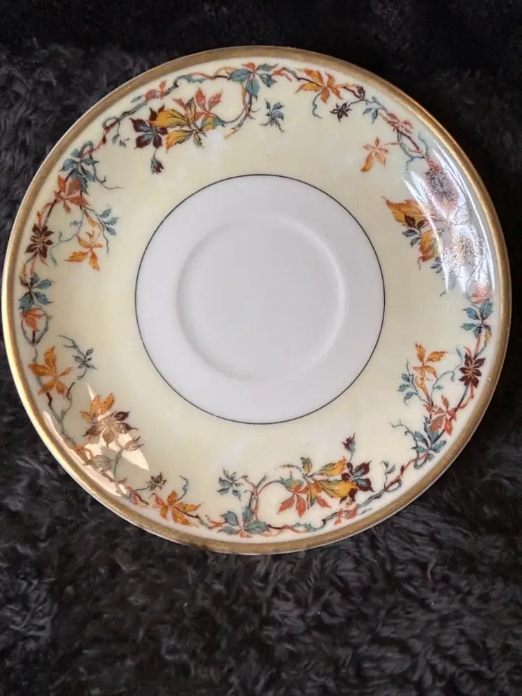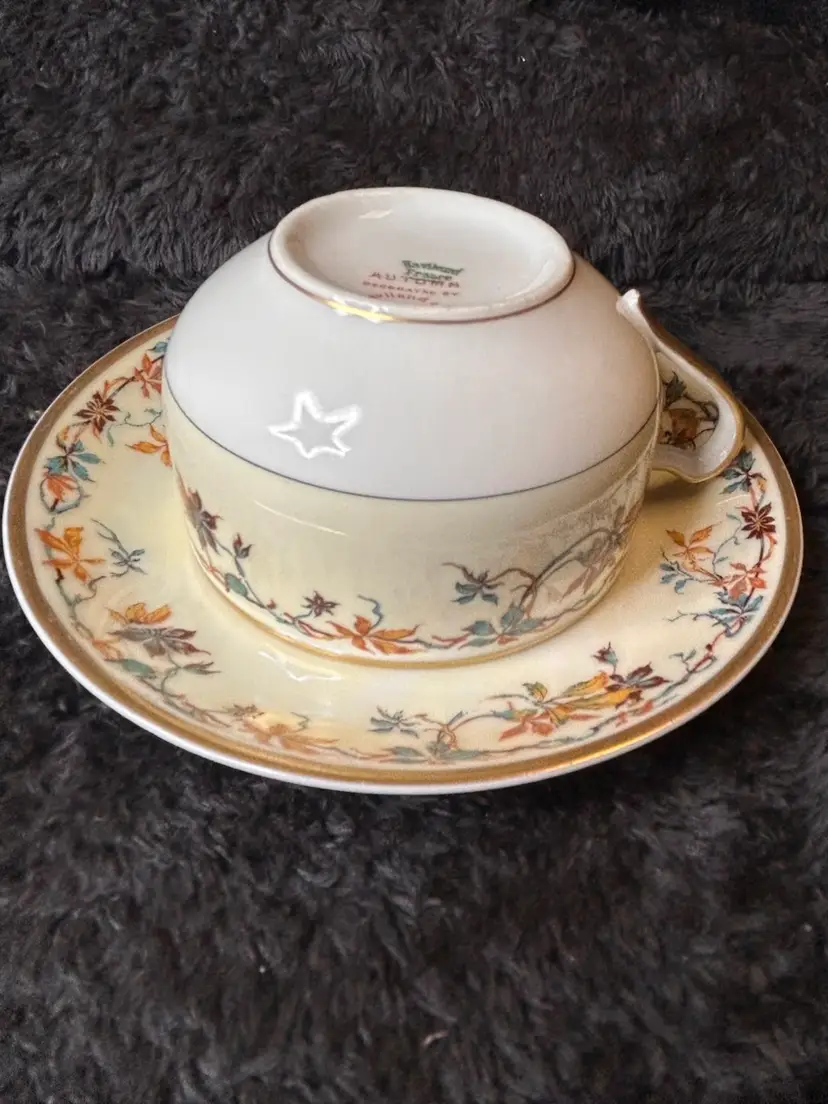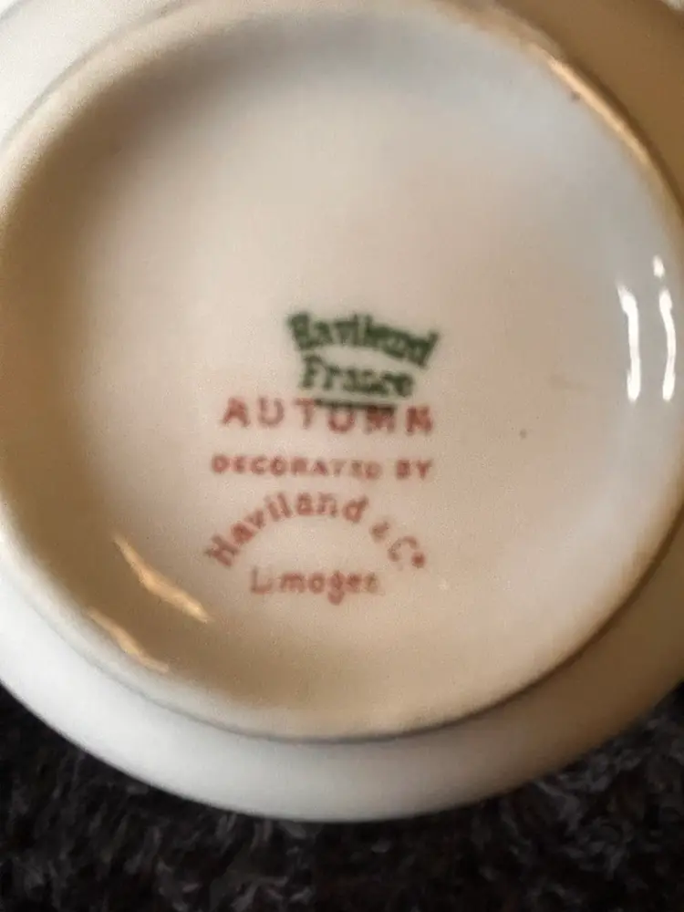 The Haviland Limoges France AUTUMN LEAF Demitasse Cup and Saucer is a charming antique original set made in France. The multicolor Autumn Leaf pattern adds a touch of elegance to this set, perfect for serving coffee or tea in style. This collection from Limoges features a saucer included, making it a complete and delightful addition to any tea or coffee service.