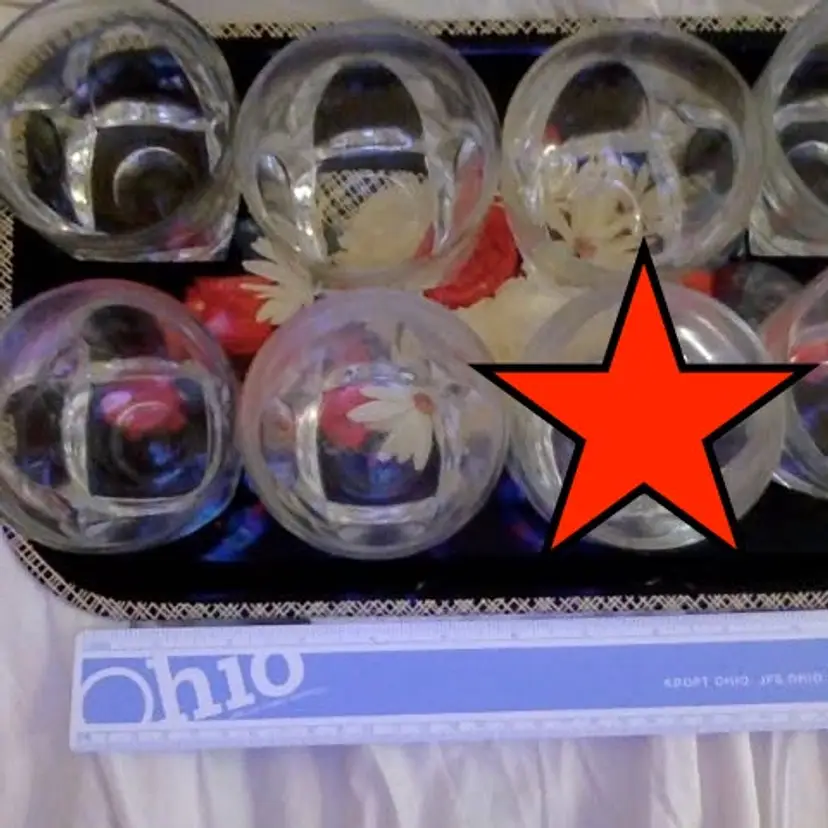 Set of 5, Hazel Atlas Vintage [Mid-Century Modern Design] clear "on the rocks" glasses, $25.