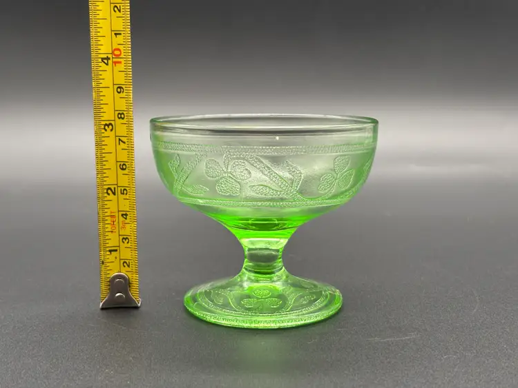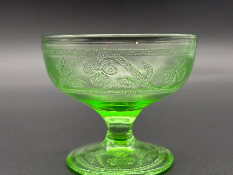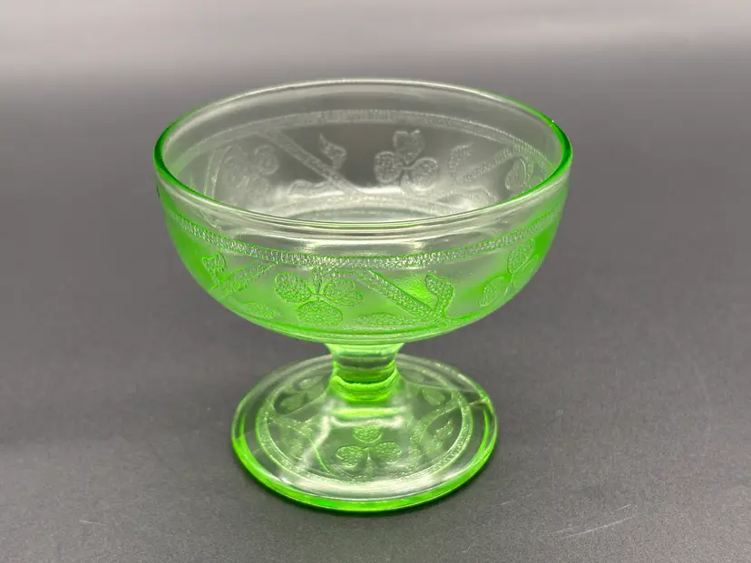 Vintage Hazel Atlas Cloverleaf Green Depression Glass Sherbet Glass | Uranium Glass