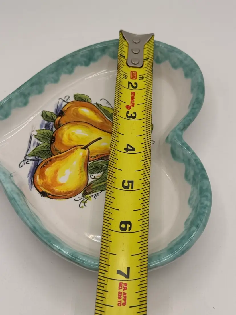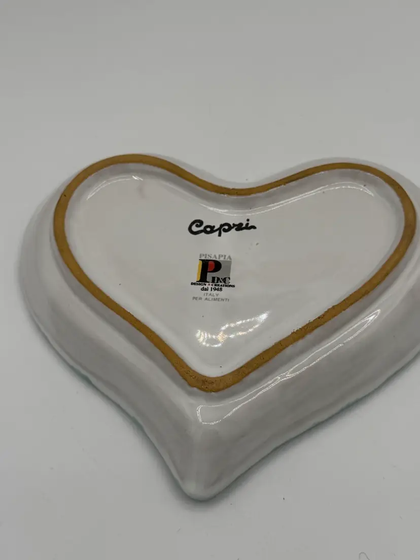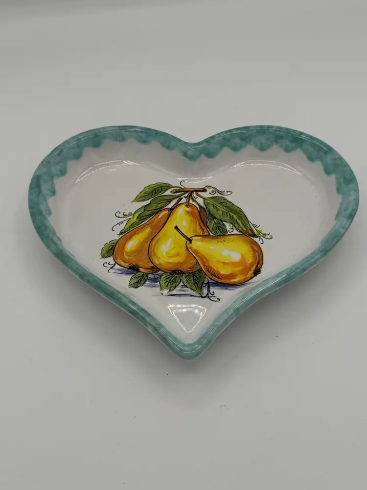 Vintage Heart Shaped Trinket Dish W/ Fruit Motif & Spongeware Edge Capri, Italy