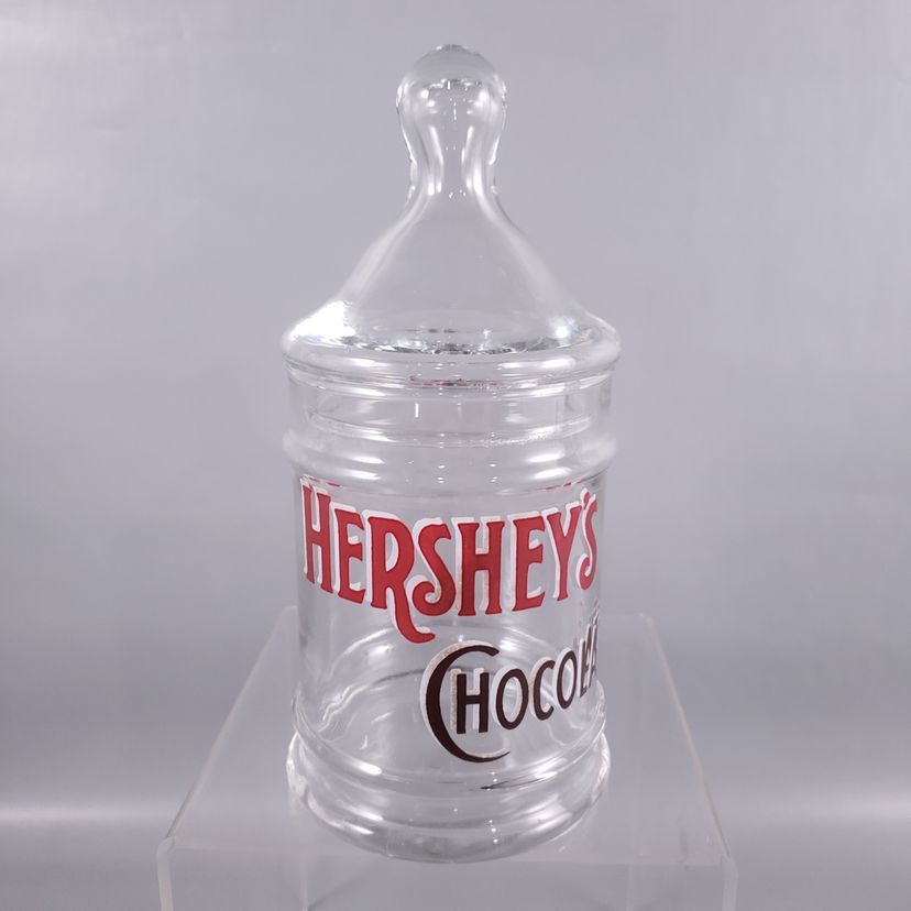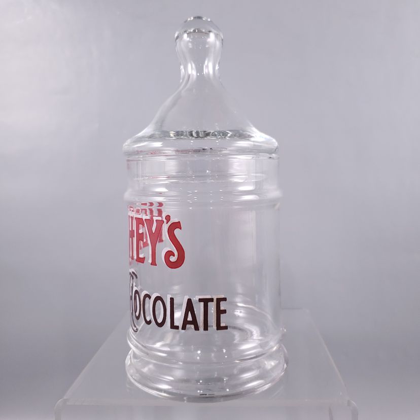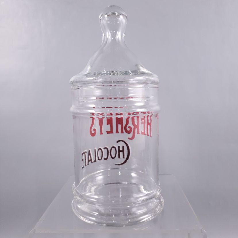 Vintage HERSHEY'S CHOCOLATE Anchor Hocking Clear Glass Advertising CANDY JAR