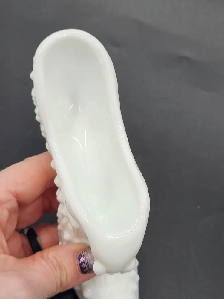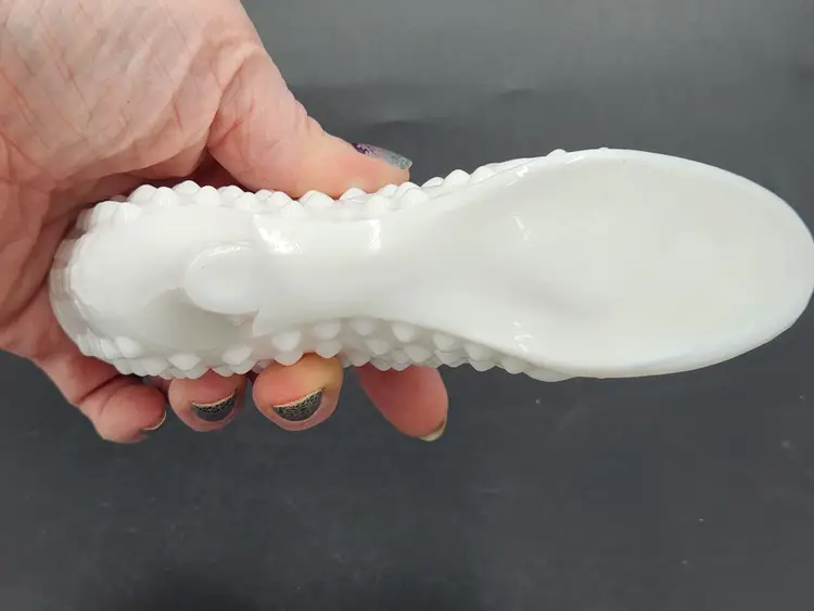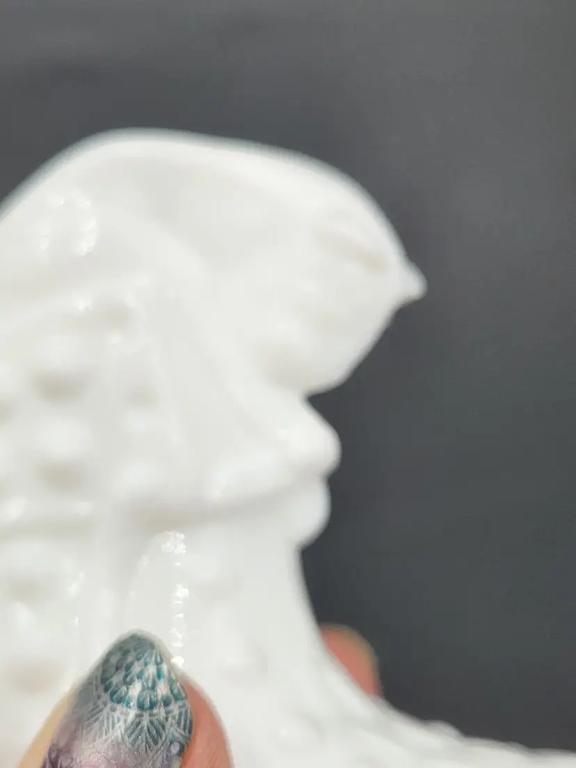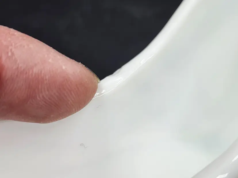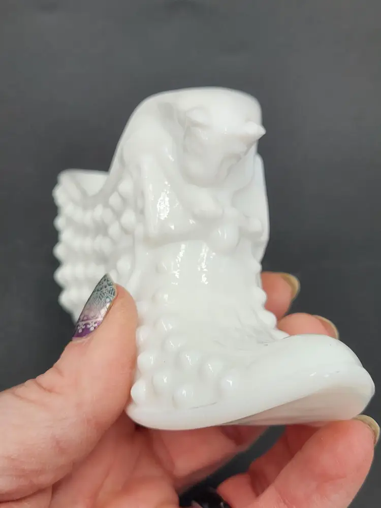 Very small chip on cat ear. Small manufacturers flaw on rim of shoe.
