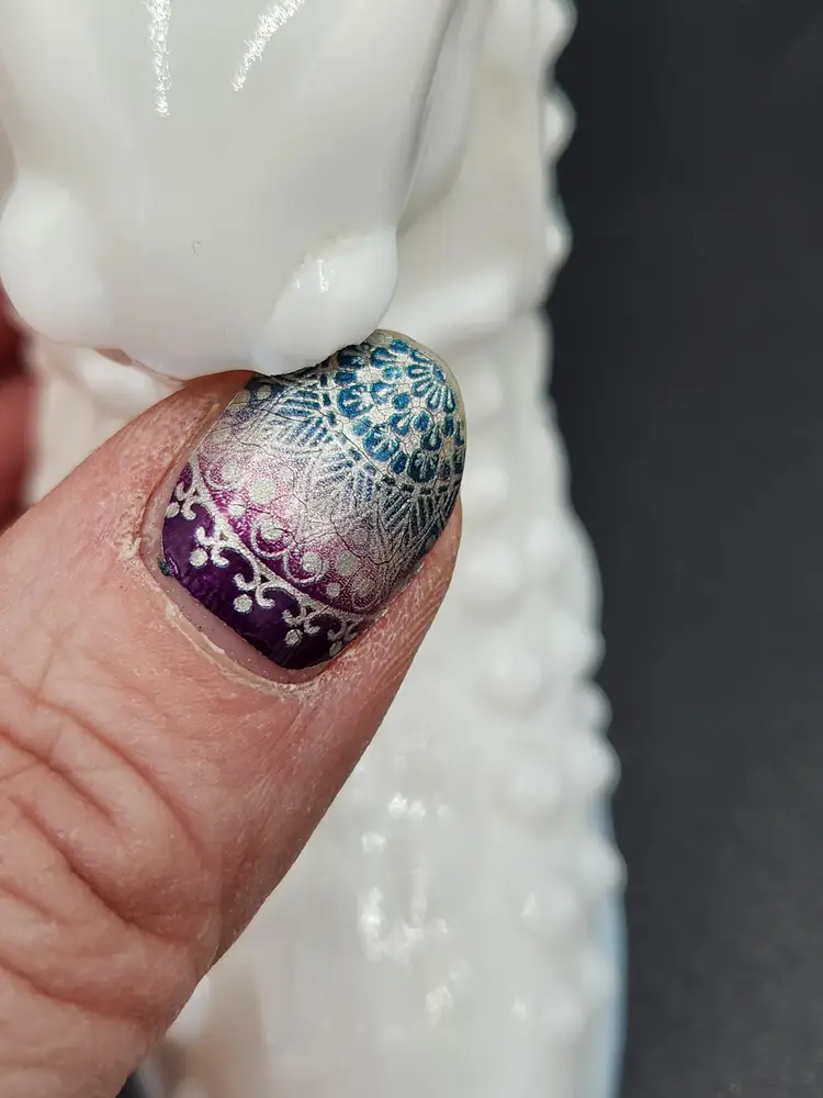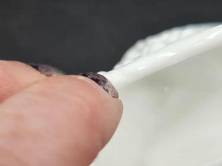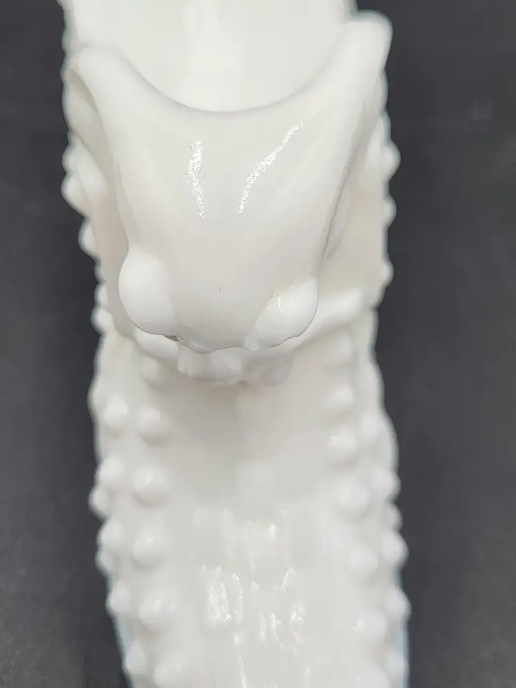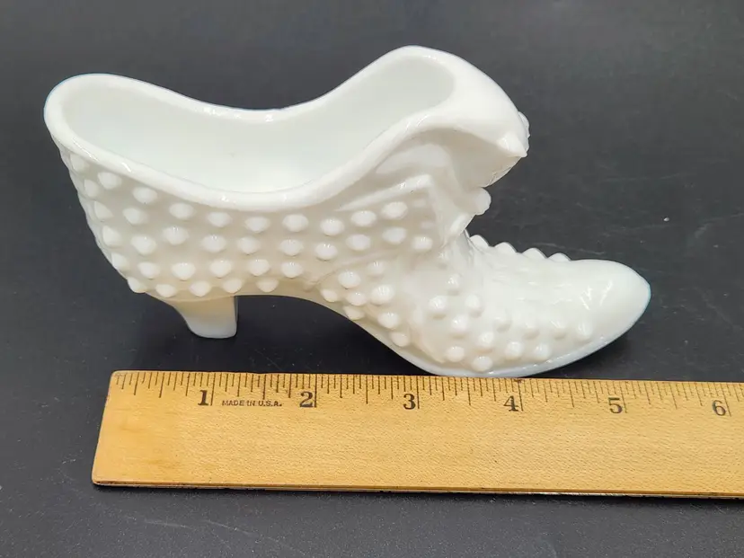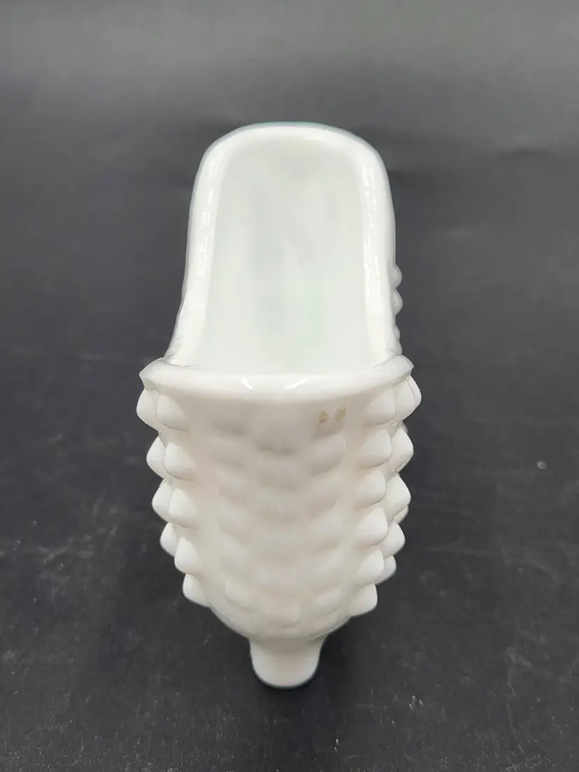 Very small chip on cat ear. Small manufacturers flaw on rim of shoe.