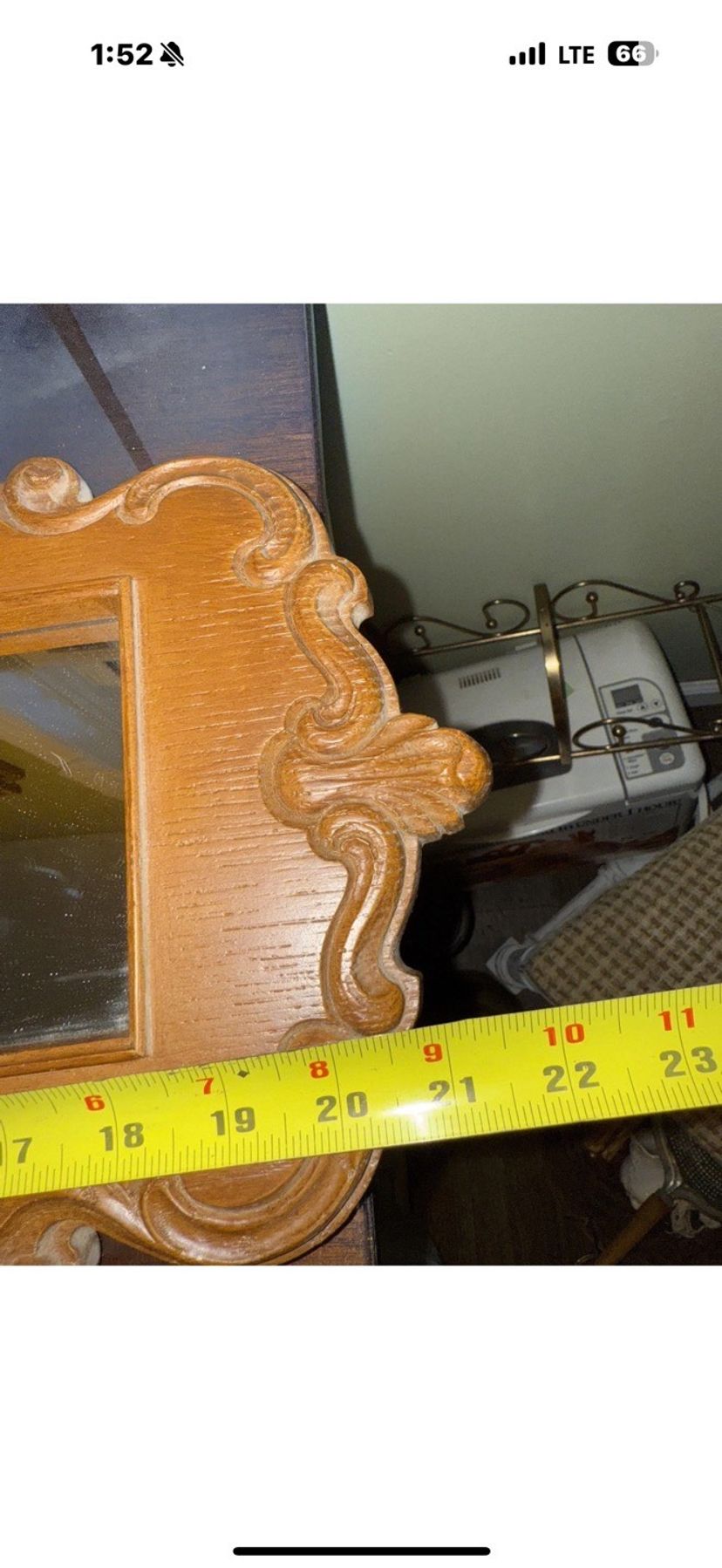The Vintage Homco 1981 Large Mirrored Wall Planter is a stylish farmhouse-style wall mirror with a brown plastic frame. This rectangle-shaped mirror measures 23" in length, 9.25" in width, and 4" in height, making it a unique and decorative piece for any room. The mirror features a 23" long x 9" wide planter, adding a touch of greenery to the wall decor. Manufactured in the late 20th century, this original Homco product is perfect for those looking to add a vintage touch to their home with a boho or garden theme.