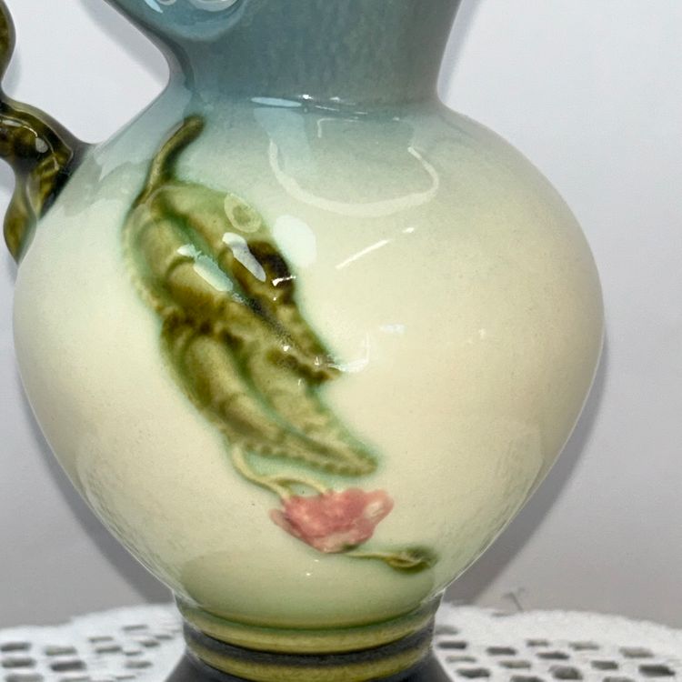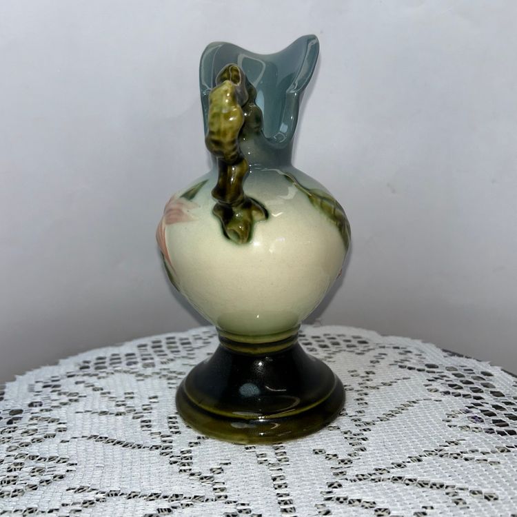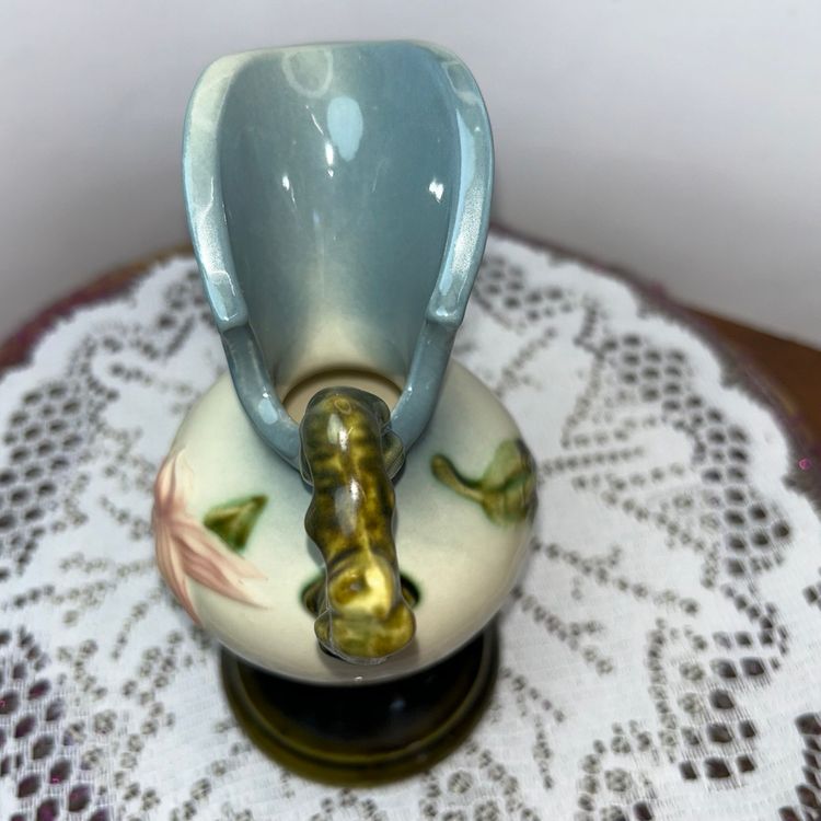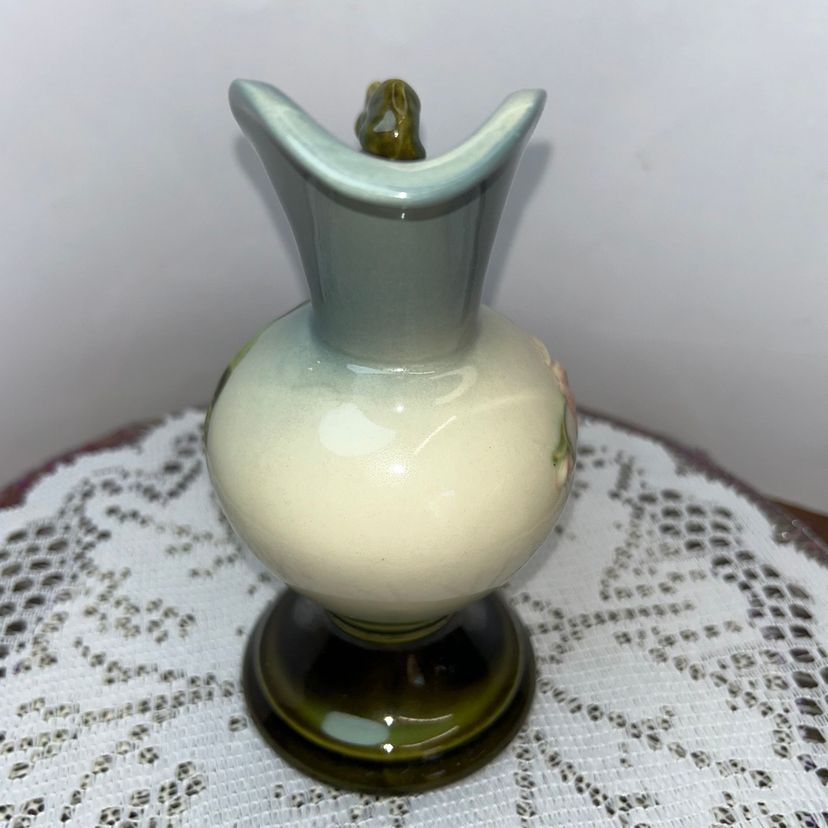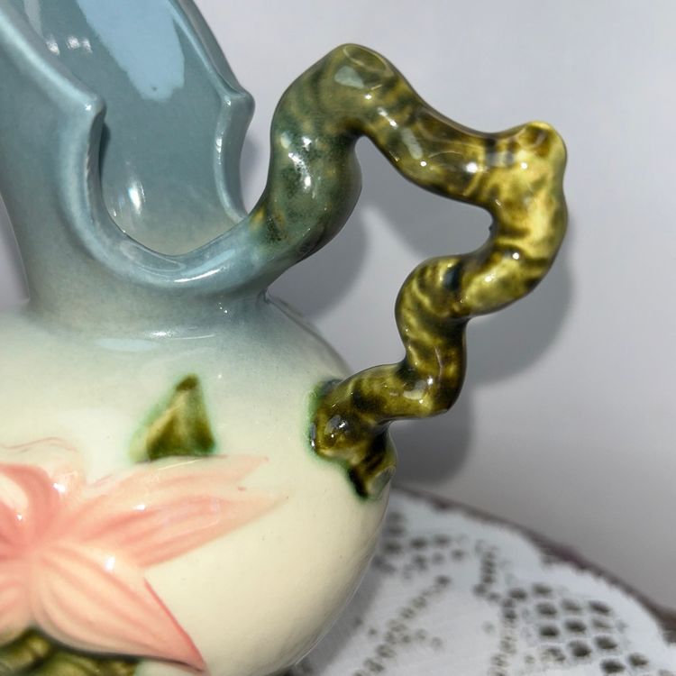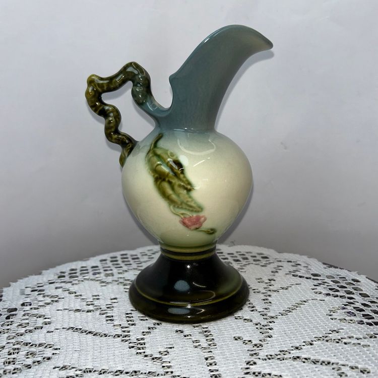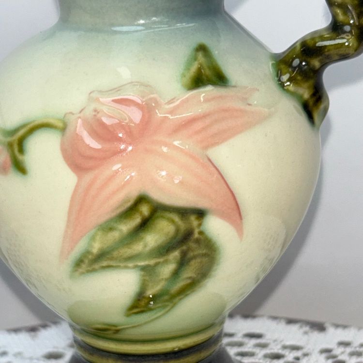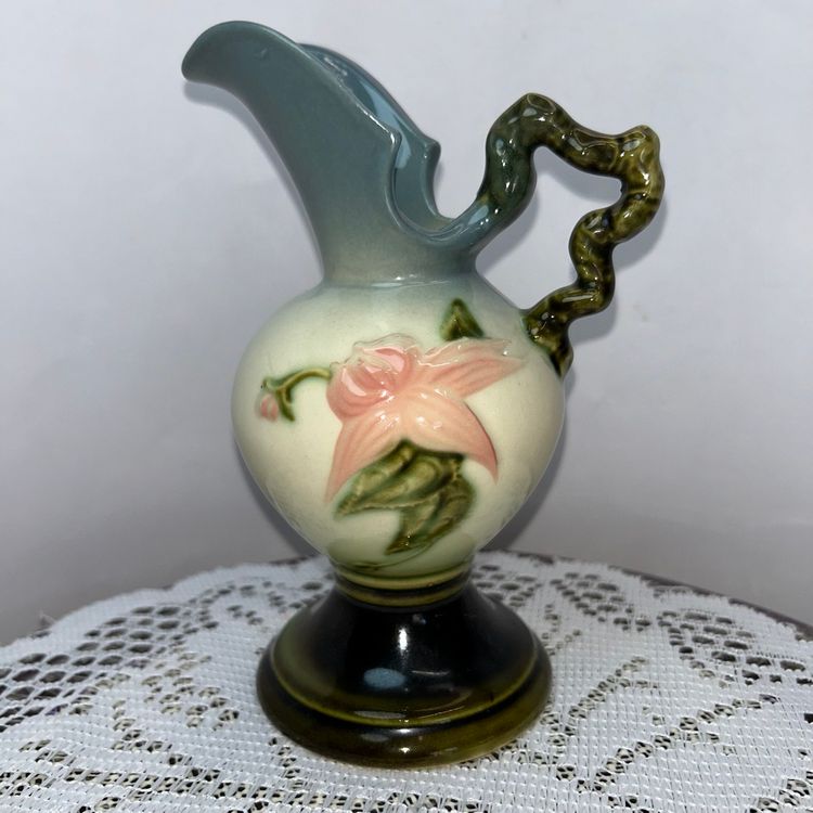 Made 1952-1954. 6.5” tall, 4.75” wide from spout through handle, 3.25” diameter base. From the Hi-Gloss era. Excellent condition. No issues whatsoever. In the 2006 Hull Pottery book by Warman’s lists the value from $150-$200 on page 219. Sad it has dropped so significantly.