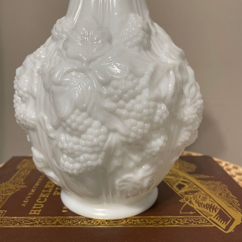 Excellent condition No chips cracks or flaws Imperial Glass Ohio Loganberry motif in milk glass 10” high 0001025