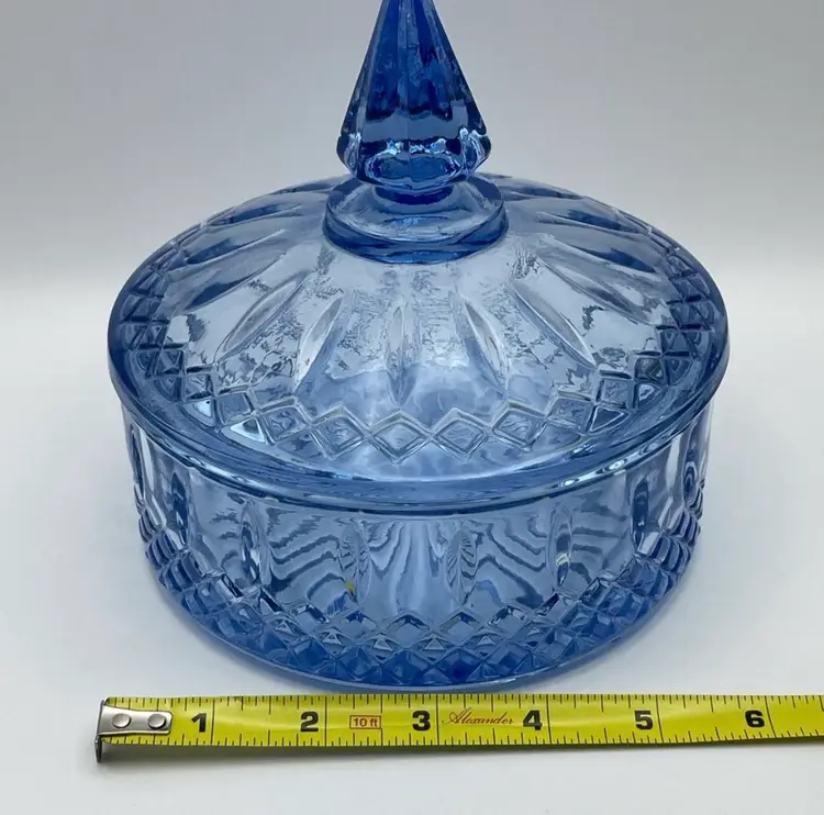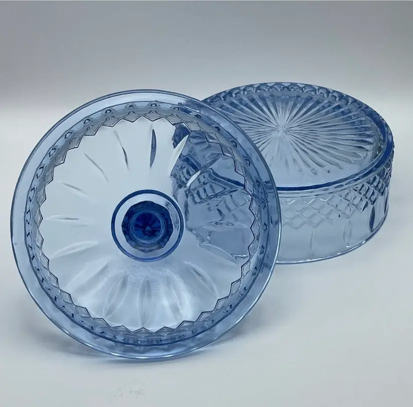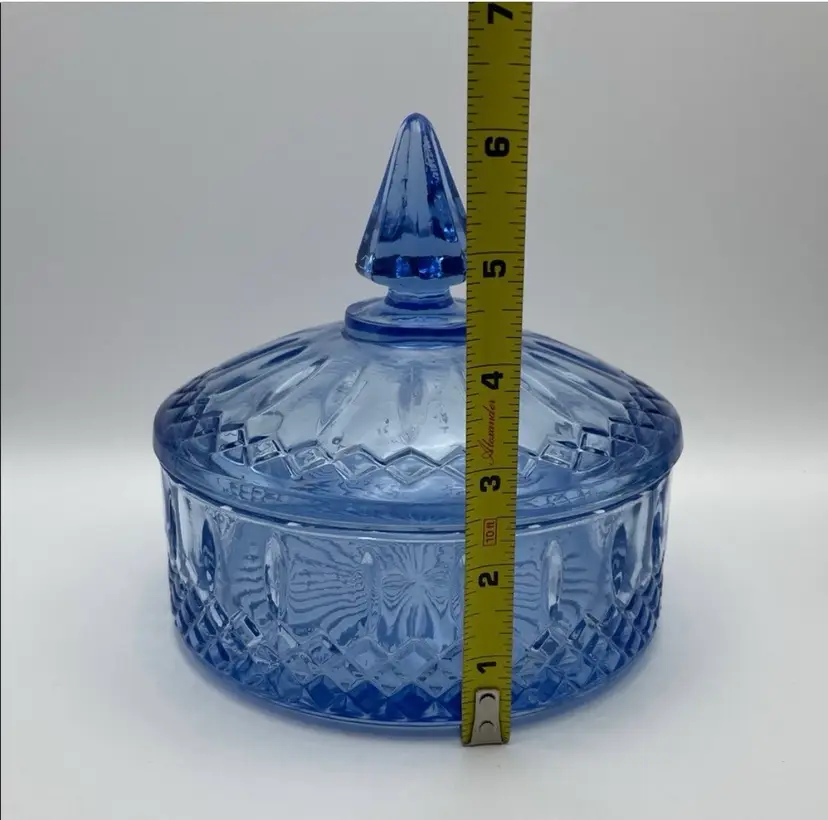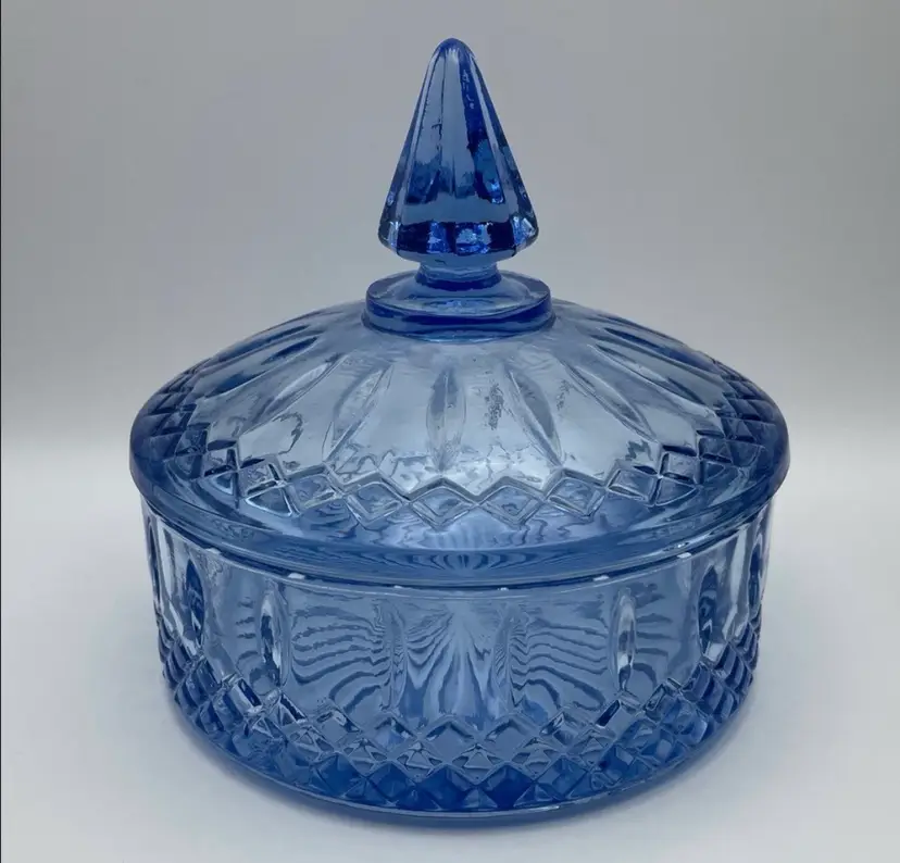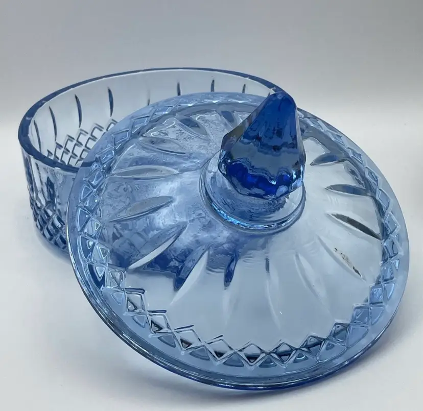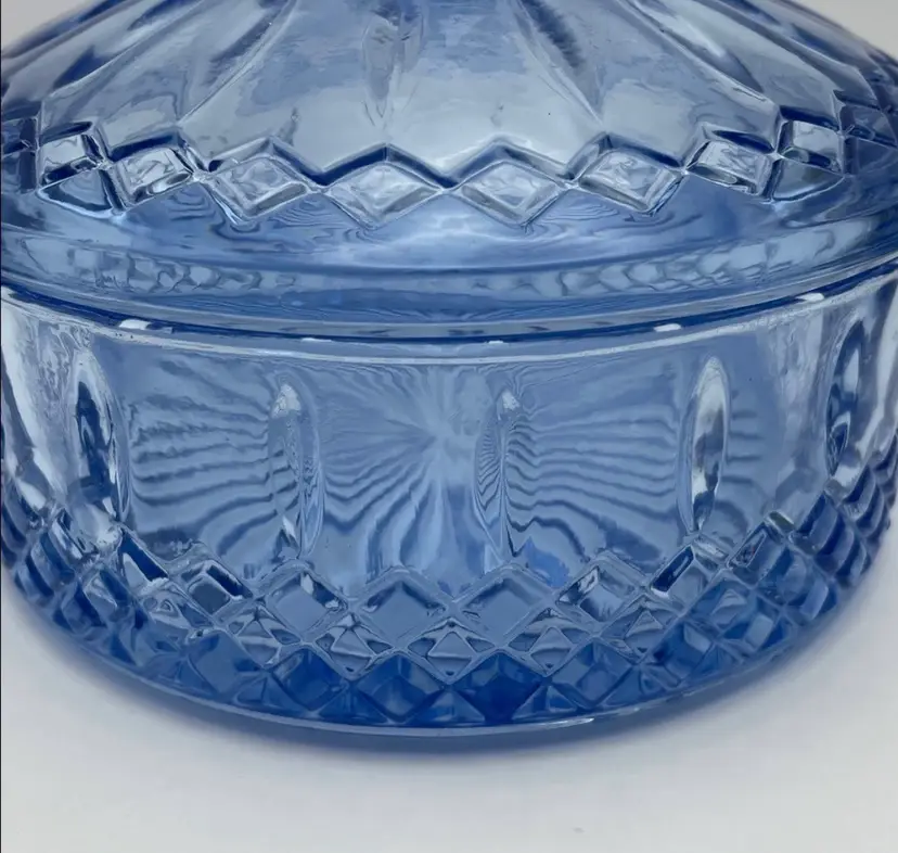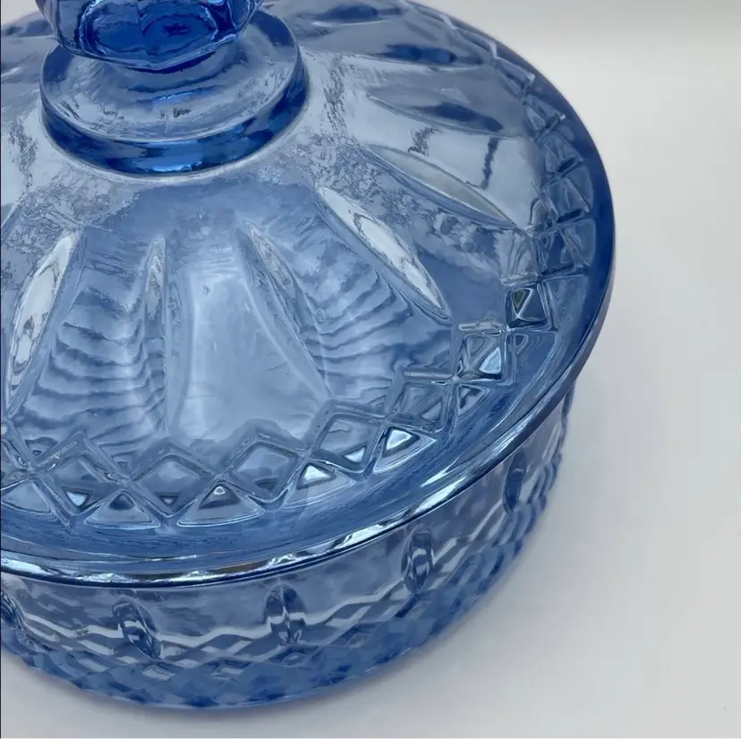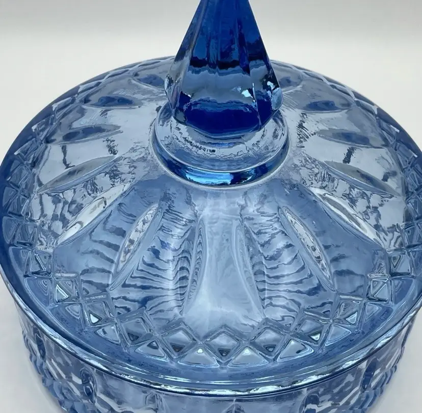 Vintage, Indiana Glass, Ice Blue, Princess Diamond, Candy Dish/Trinket Box & Lid. Excellent condition!
