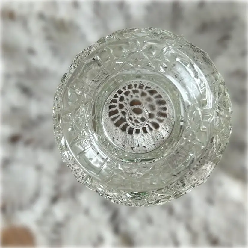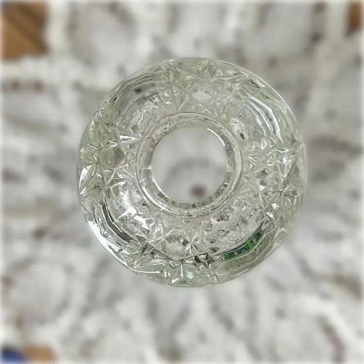 Measures 7” tall by 4.75” wide across top portion of base. Weighs over 2lbs and has no flaws.