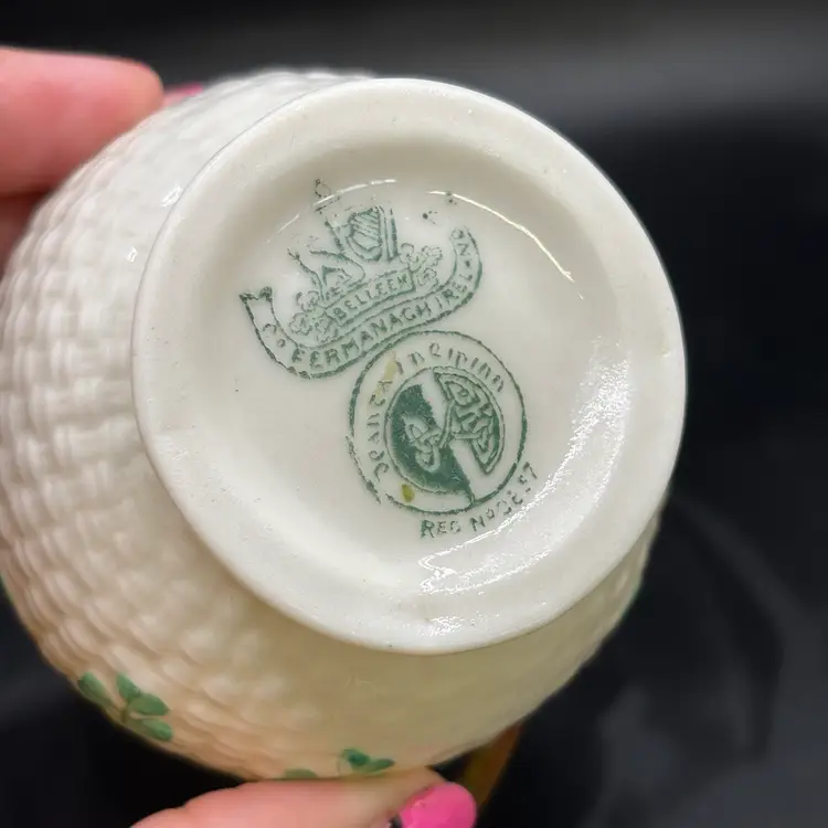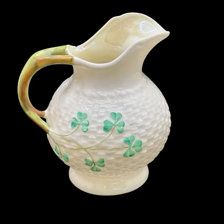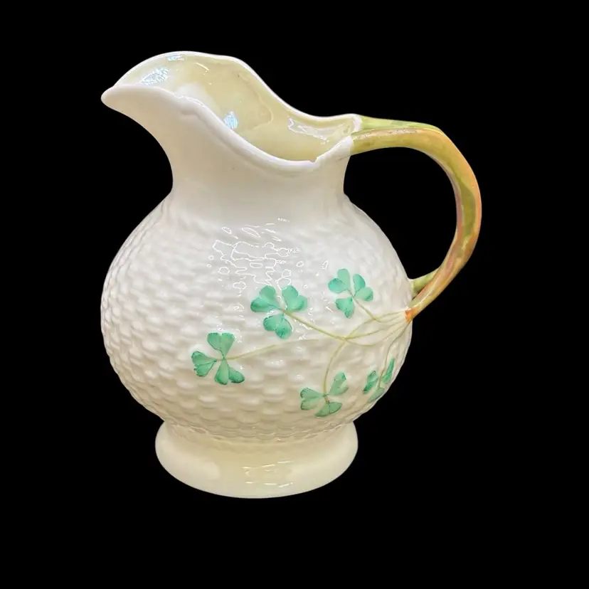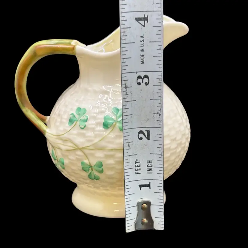 Vintage Ireland BELLEEK Pottery Green Shamrock 4" Pitcher Creamer 4th Green Mark*