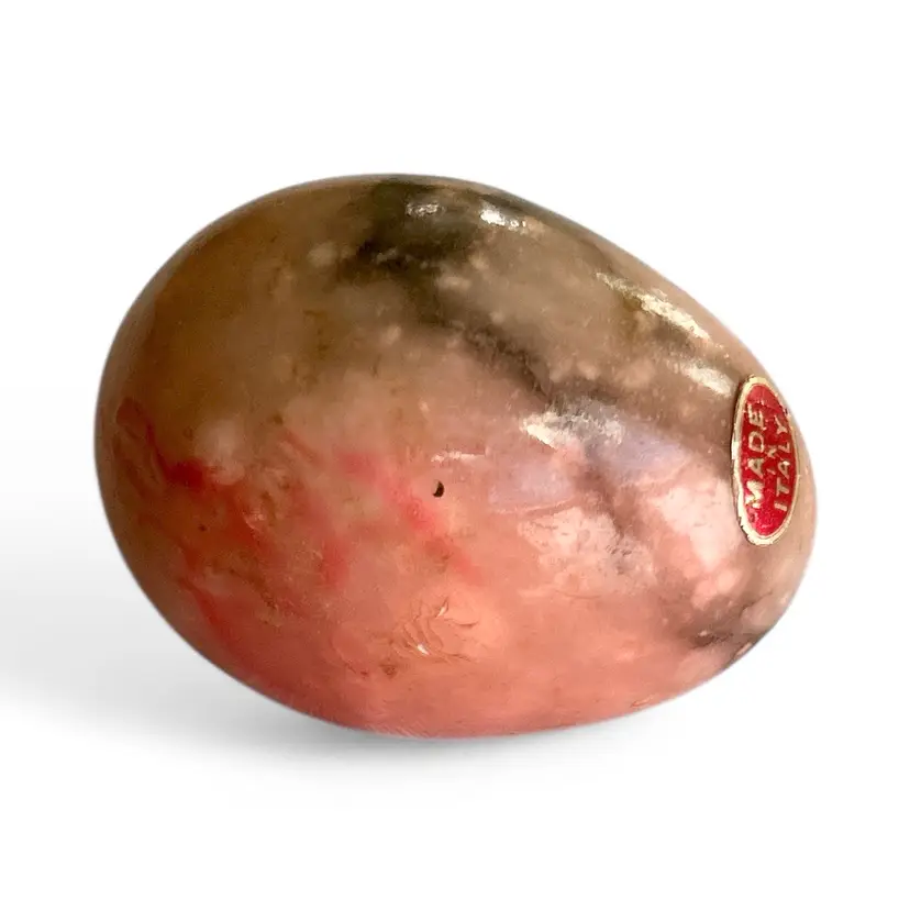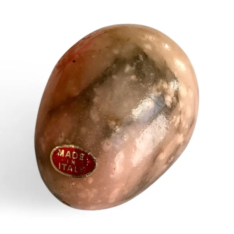 Add a touch of elegance to your desk with this vintage polished stone paperweight from Italy. Its unique blend of earthy tones makes it a perfect decorative piece. Size: 2.5”