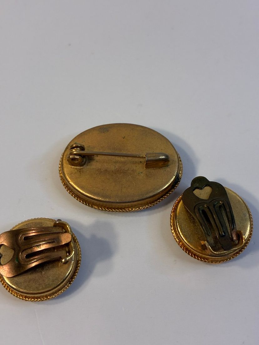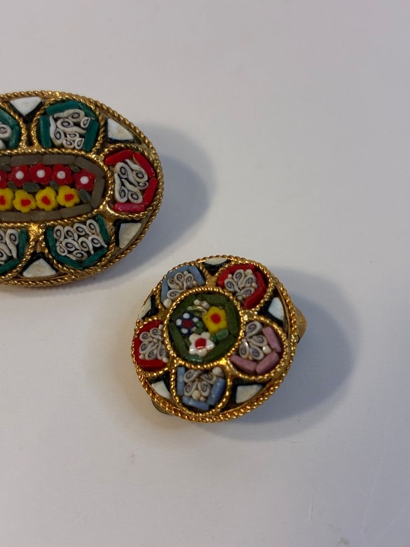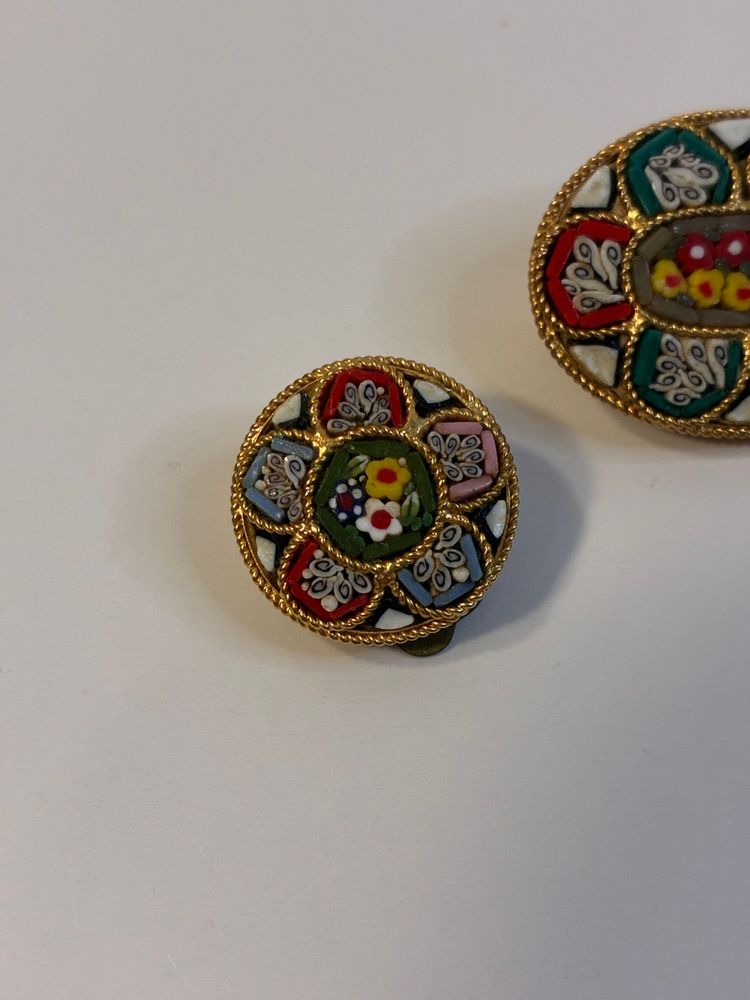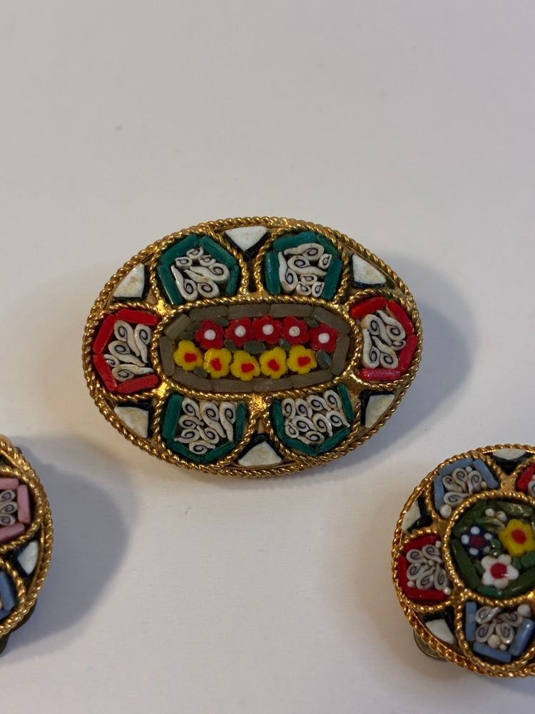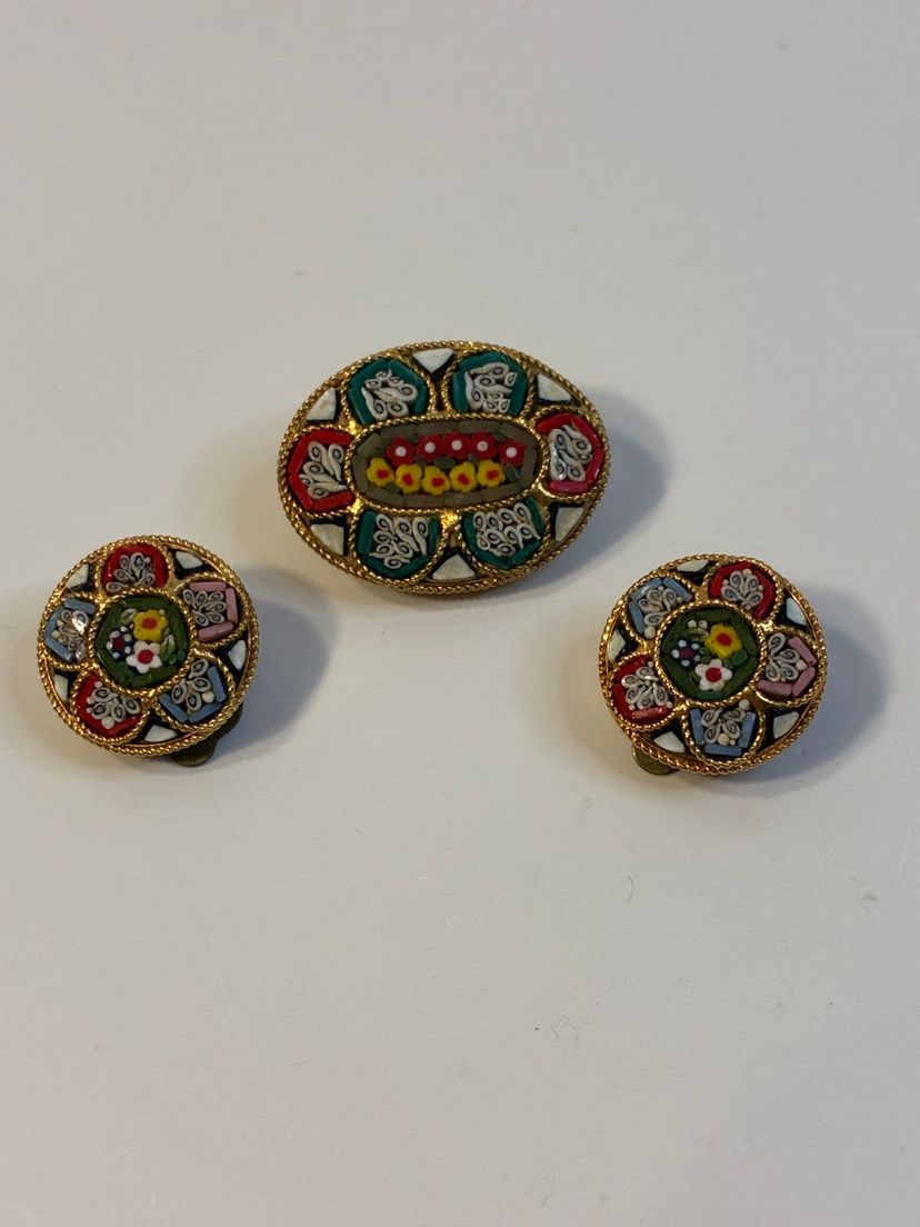 Vintage Italian, Micro Mosaic, Clip Earrings, And Brooch
