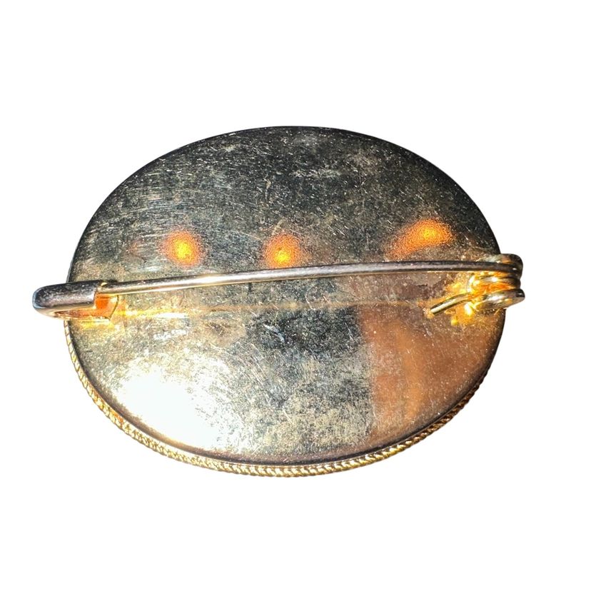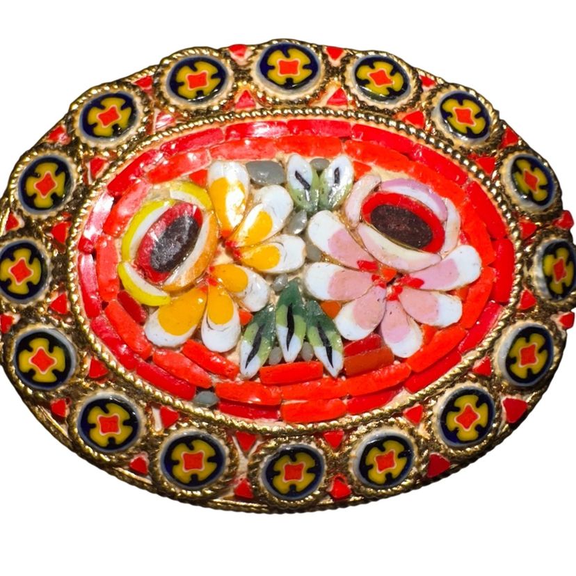 Vintage Italian micro mosaic oval floral brooch Gold tone 1 1/4” tall x 2.5” wide