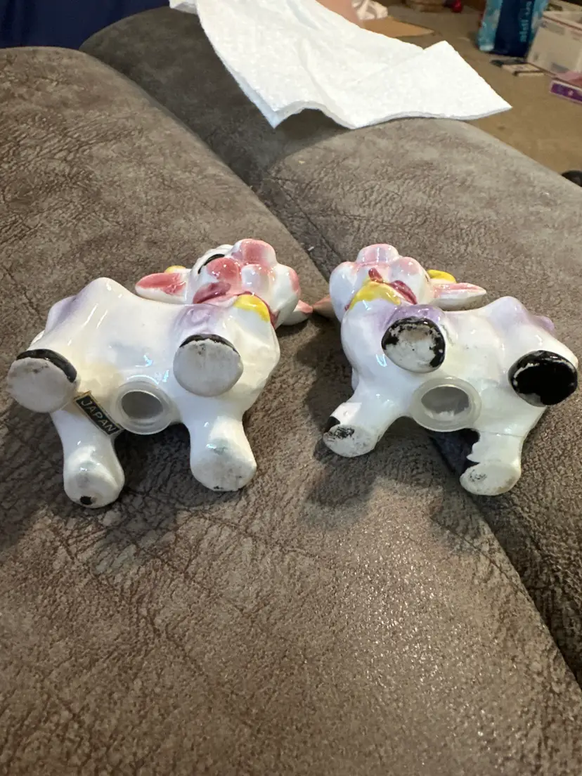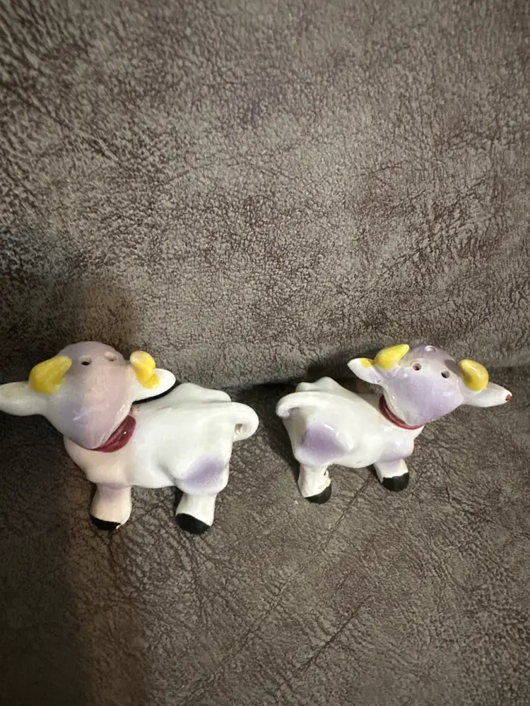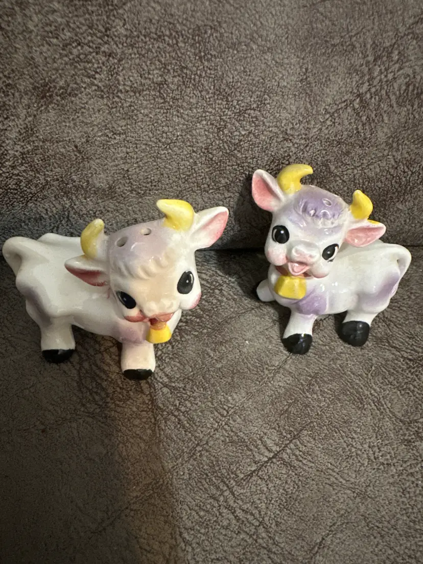 Vintage Japan Porcelain Hand Painted Cow Salt & Pepper Shakers