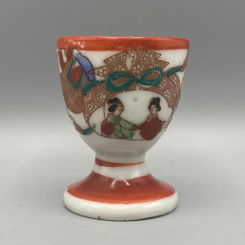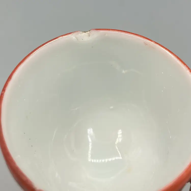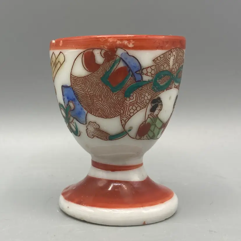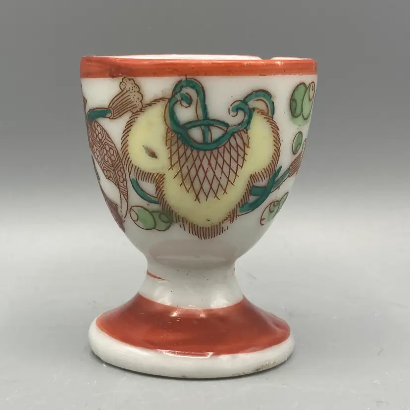 This egg cup is in good overall condition; there is one chip on the edge of the cup, please see the last two pictures for details. It measures approximately 2 1/4" tall x 1 3/4" across.