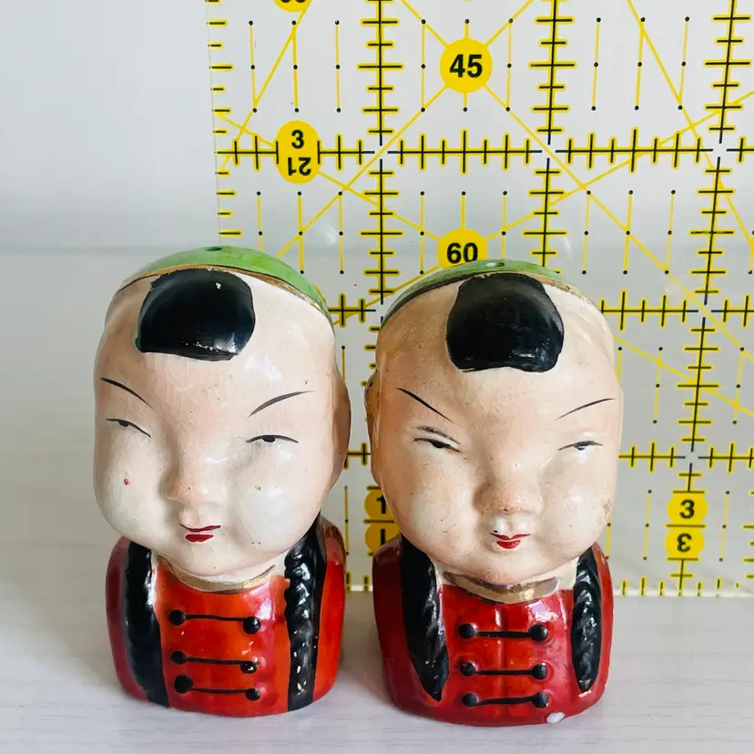 Measure about 2.25 inches tall A area or two of paint loss on the shakers. See photo for detail.