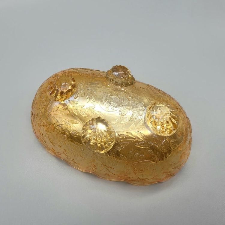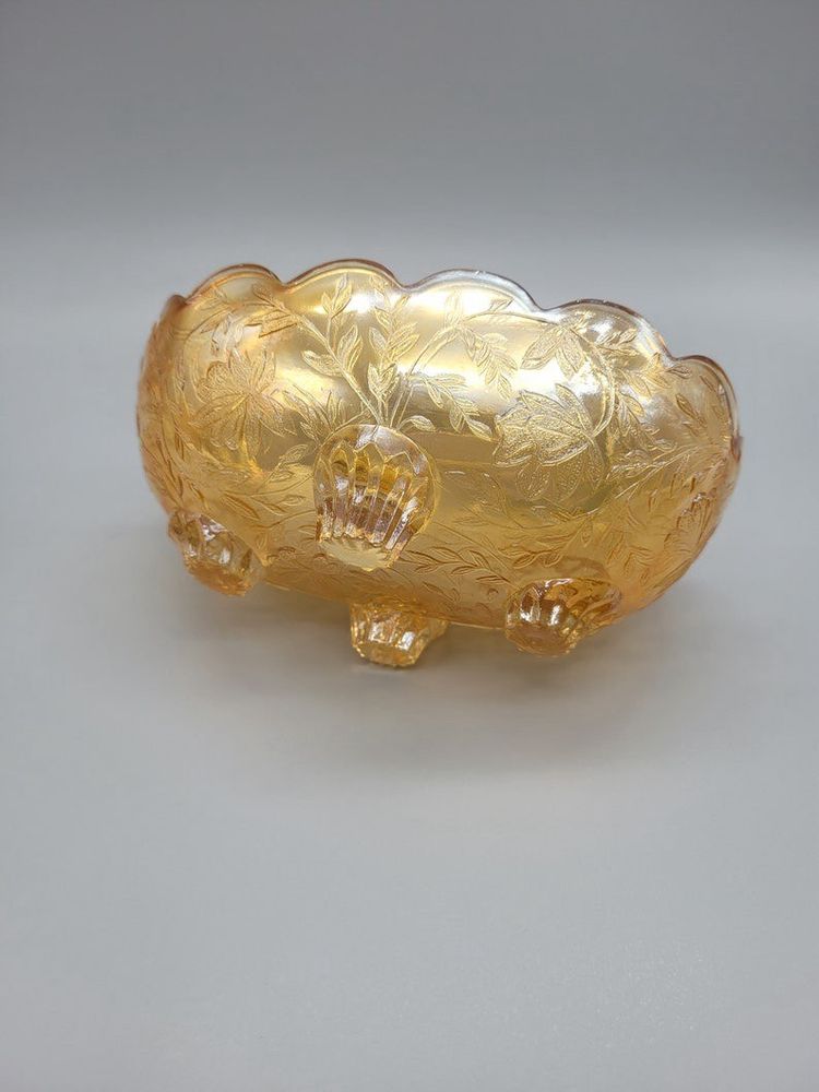 Beautiful small 4 footed dish for small items/trinkets. 5 3/8"L x 3 3/8"W x 2 1/8"H. No chips or scratches.