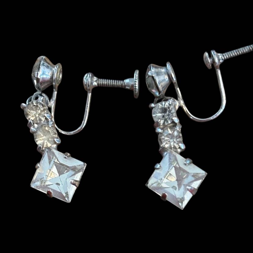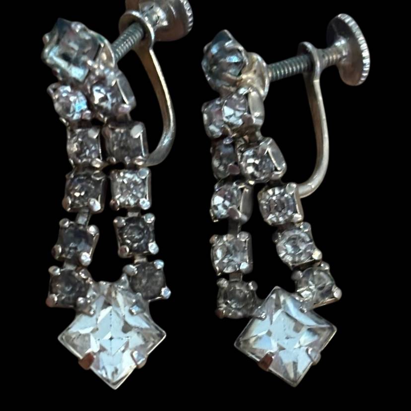 Lovely mixed lot of mid-century costume jewelry including rhinestone dangle earrings, faux pearl clip-ons, aurora borealis cluster clips, green cabochon earrings, and two unique rings. A fun mix for collectors, crafters, or vintage fashion lovers. All pieces are wearable with light age-related wear. Perfect starter collection or resale bundle.”