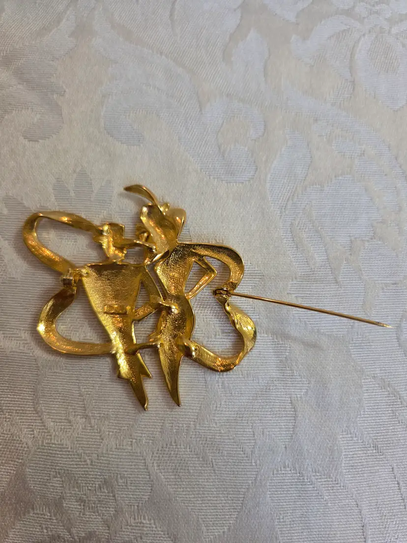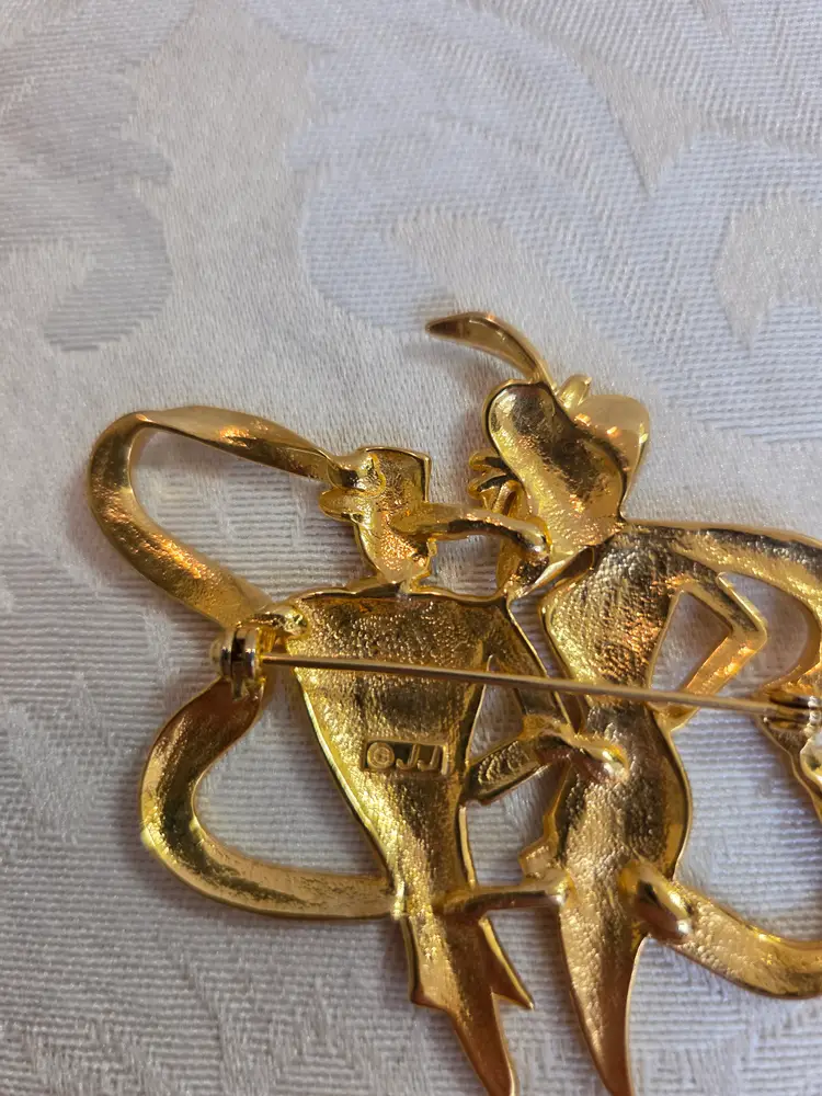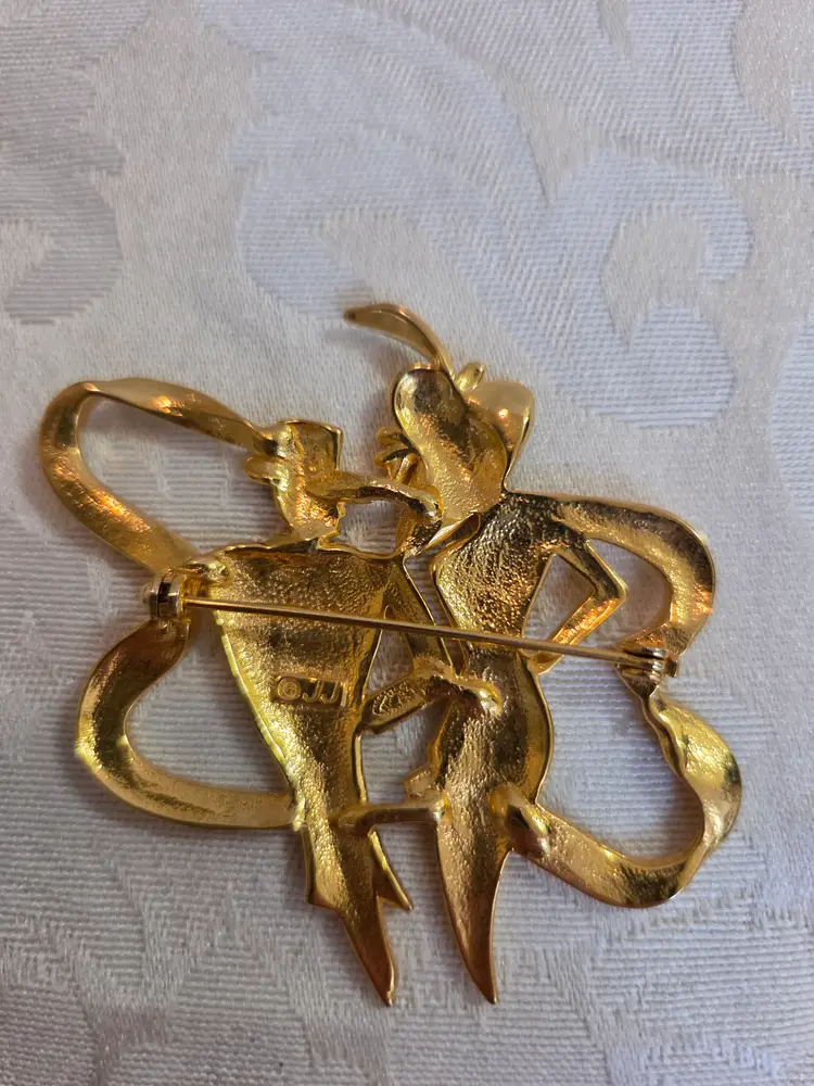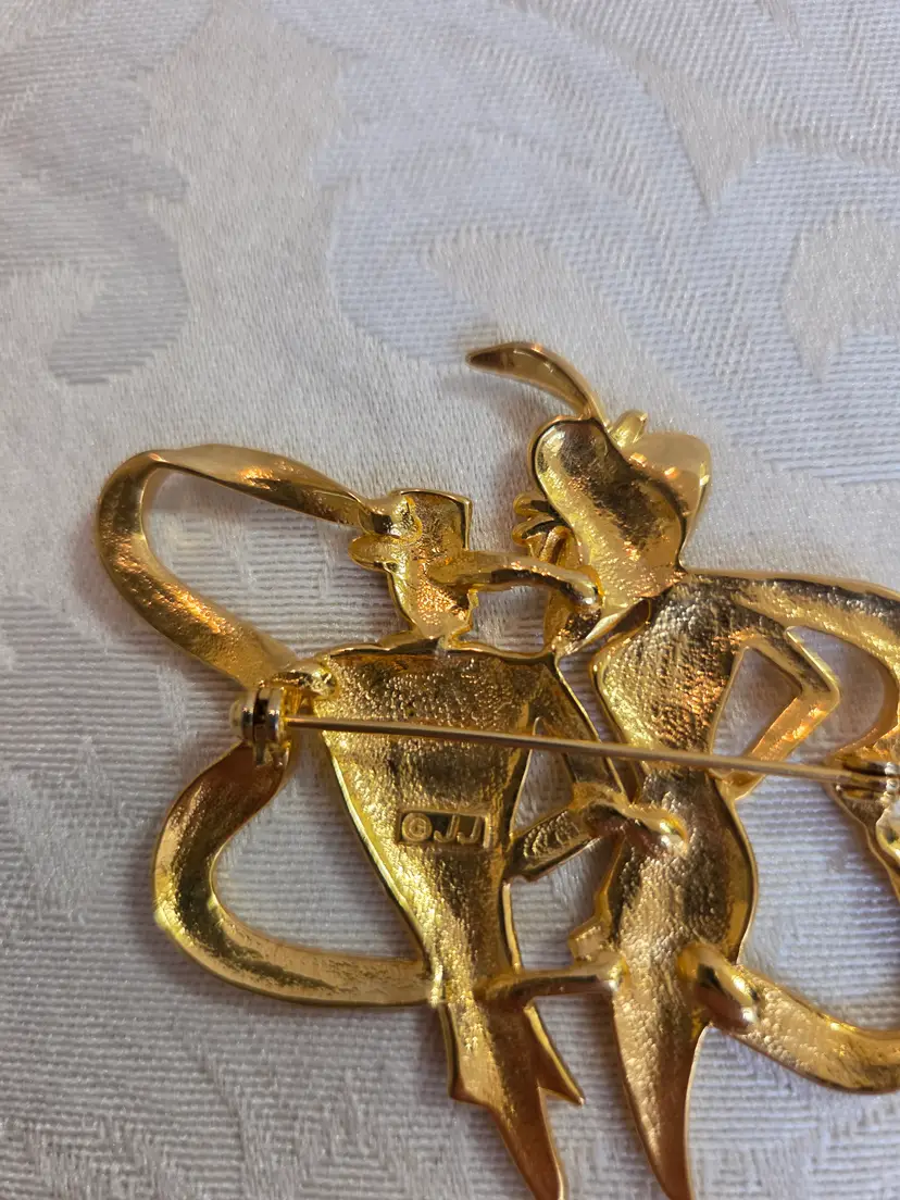 Vintage gold tone JJ marked brooch. Excellent used condition. Brooch is 2 1/4" wide and approx. 3" long.