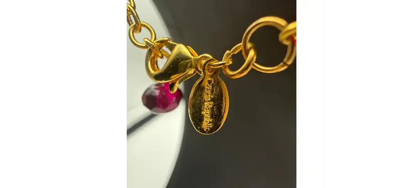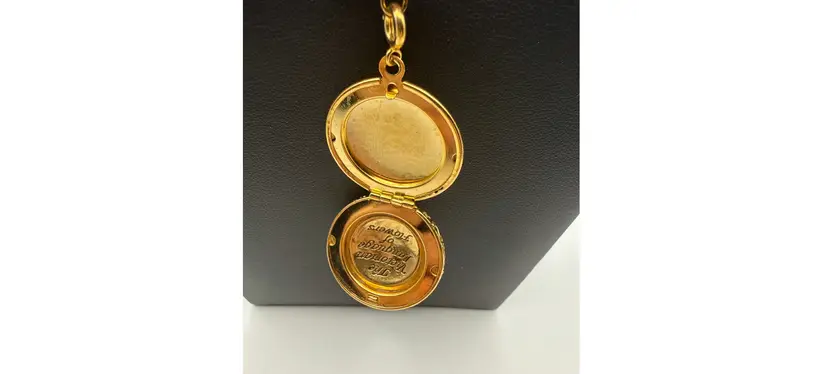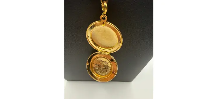 ITEM SPECIFICS Base color: Gold tone (untested costume jewelry) Maker’s Mark?: Yes. Reads: 1. Joan Rivers. 2. Czech Republic Condition: Pre-owned/used good condition Necklace Length: 17.5-18 inches Extender?: Yes. length of extender: 3 inches Pendant?: Yes, enamel locket with its own clasp and single red rhinestone Height: 1.5 inches Width: 1 inch Depth: .5 inches