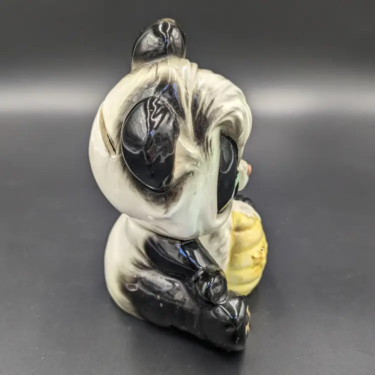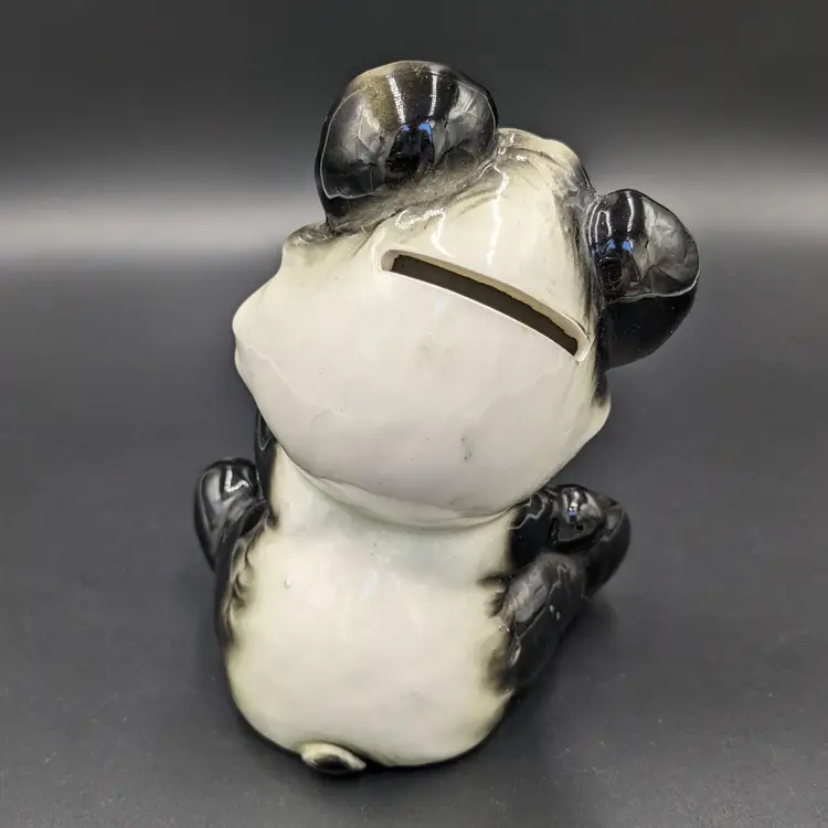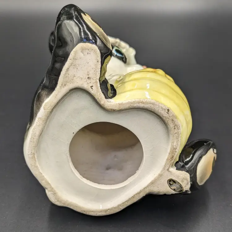 Adorable. Does not have its original stopper. There is a glazed over (what looks like) a tiny chip on top of its foot. Does have crazing. There is a worn sticker attached that either says "Japan" or "Josef". All pictures provided are a part of the item's description. No cracks, breaks or repairs. Shipped with USPS Ground Advantage Mail.