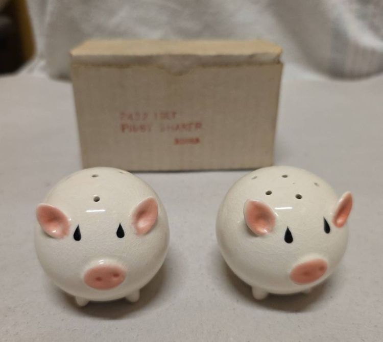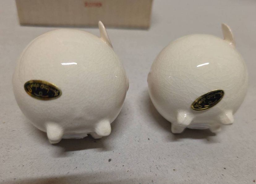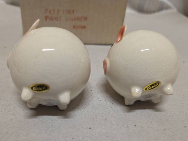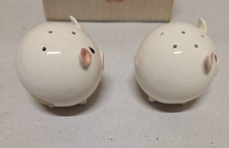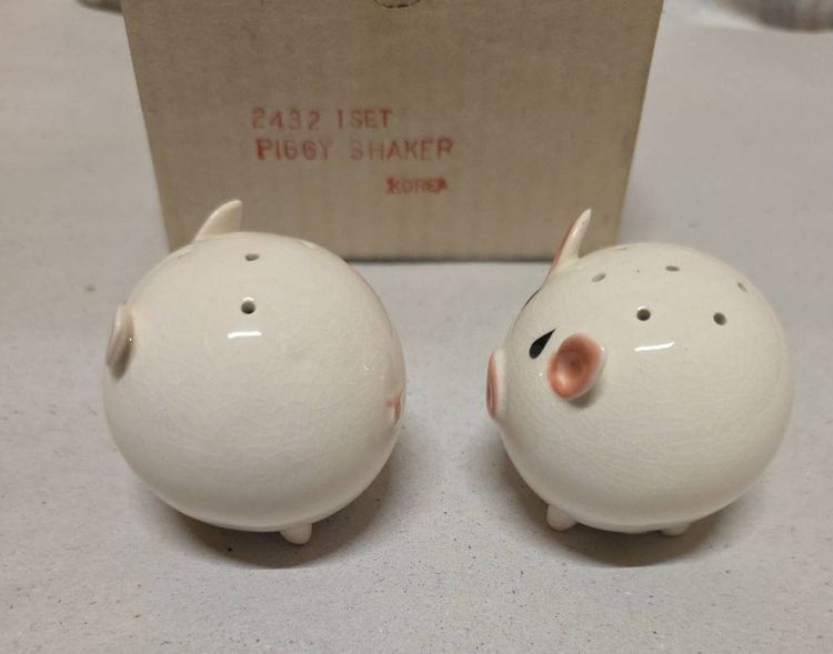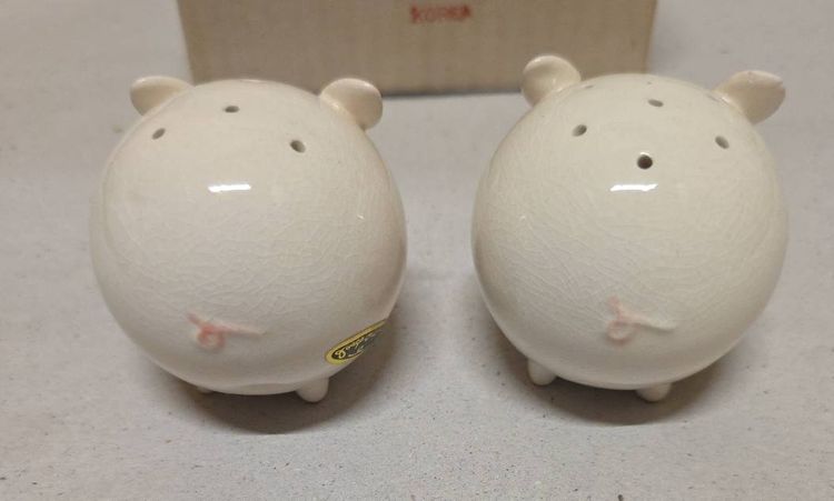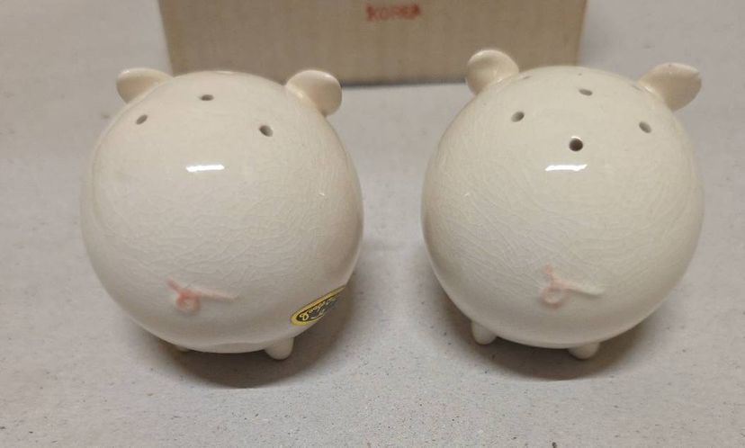 This vintage Josef Originals round pig piggy salt and pepper shaker set is a charming addition to any kitchen or dining table. Made of ceramic and porcelain in pink and white, these small shakers feature a round shape and animal theme, perfect for all occasions. With its original design from the 1960s, this collectible set includes a pepper shaker and salt shaker, both reusable and hand wash only. Manufactured in Korea, this unique set is a must-have for collectors of shakers and those who appreciate retro kitchen decor.