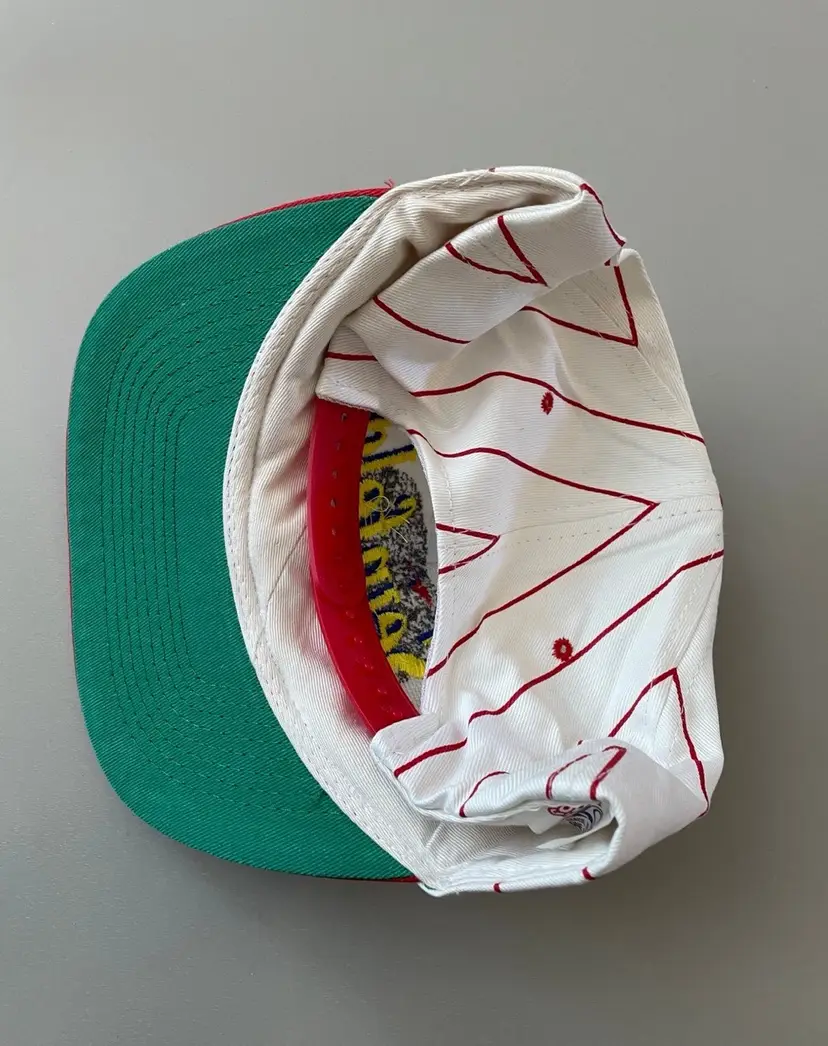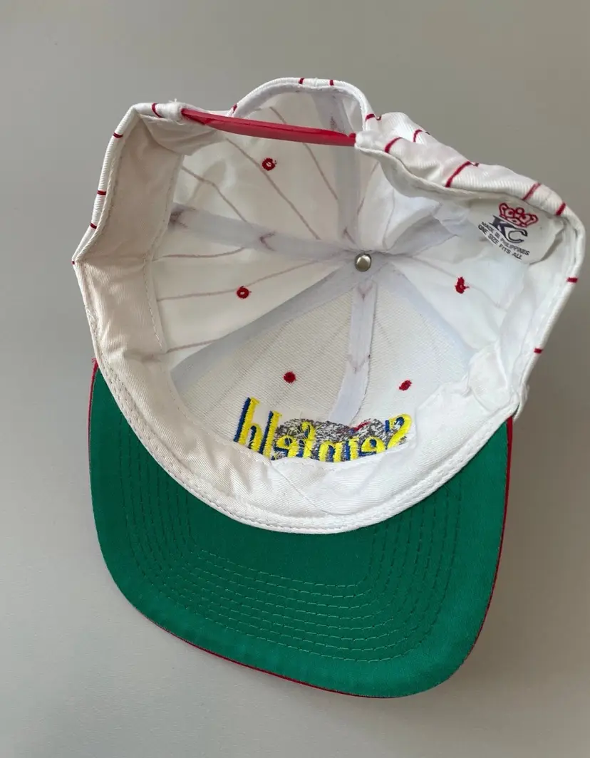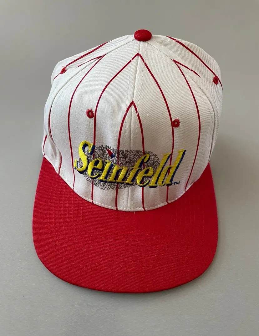 Vintage KC Caps Seinfeld TV Show Logo Snapback Hat White Pinstripe 1990s RARE!! Great condition! Awesome color combo. Nice 90’s look. Comes as seen in pictures.