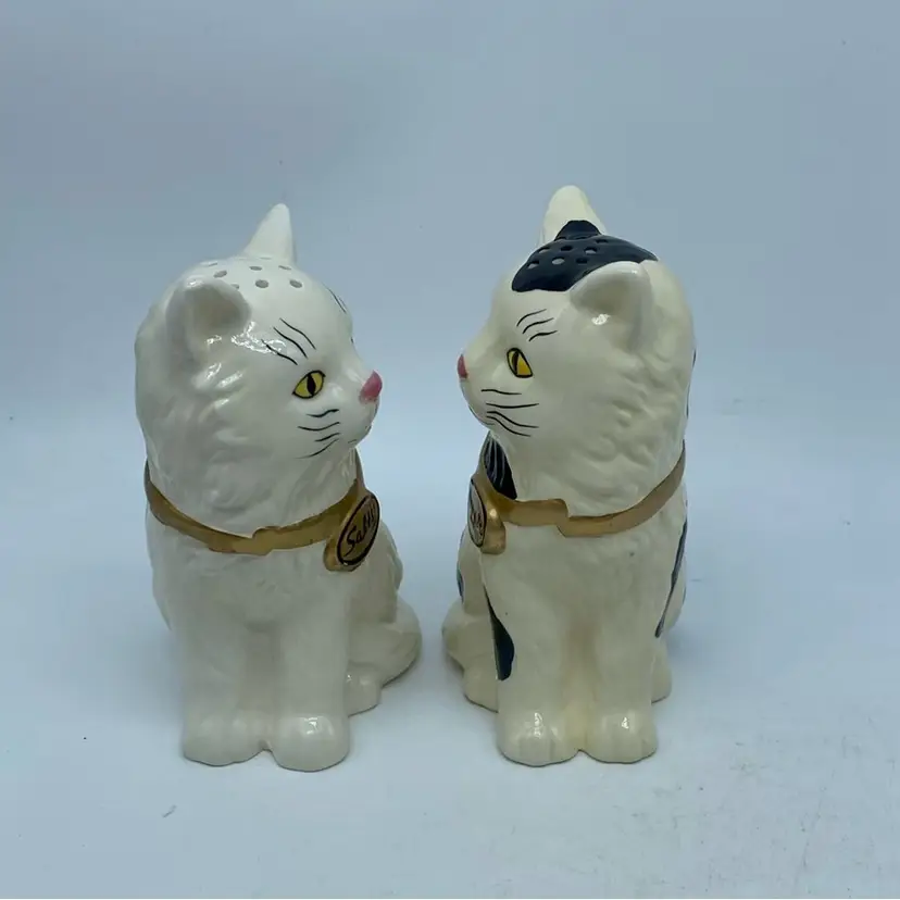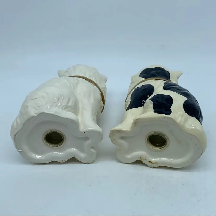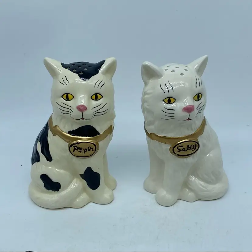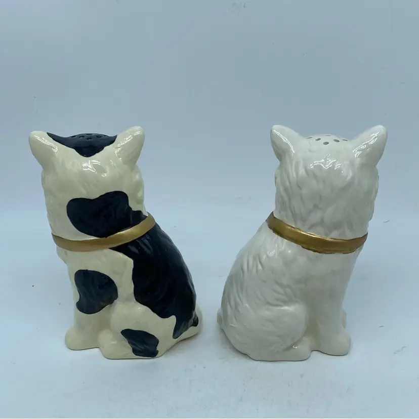 Lovely pair of Black and White ceramic Salt and Pepper Shakers. Approx Size; 13cm High x 8cm Wide x 6cm deep.
