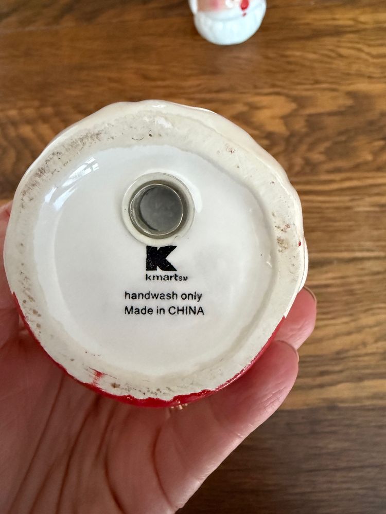 Add cheerful holiday charm to your table with this vintage-inspired set of Santa Claus salt and pepper shakers from Kmart’s Christmas collection. Each ceramic shaker features Santa’s jolly face, red hat with holly detail, and a glossy hand-painted finish. Perfect for festive table settings, Christmas displays, or as a sweet nostalgic gift.