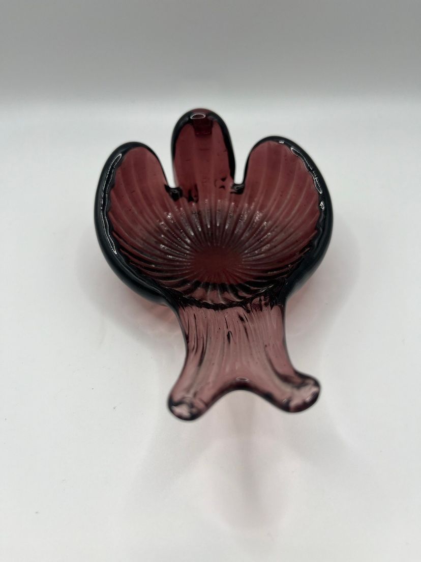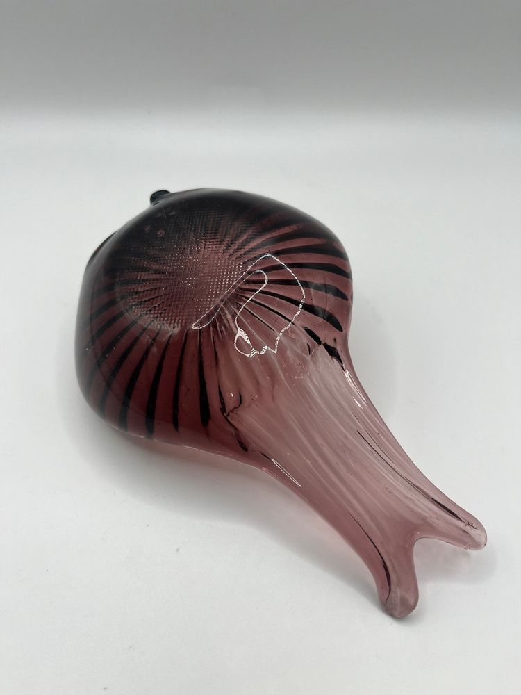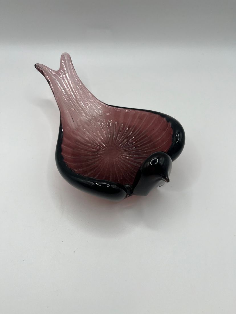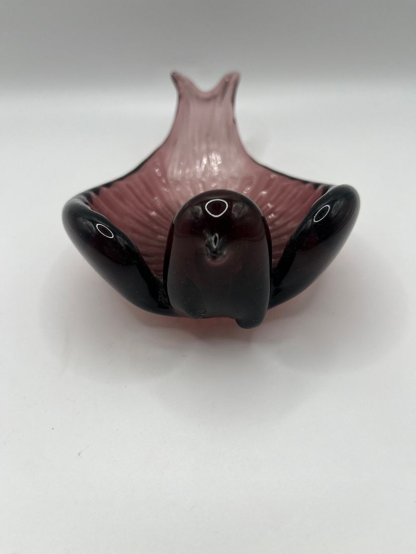 This purple art glass swan would be great to use as a trinket dish or to sit on a stack of books. It is in great condition with no chips or cracks.