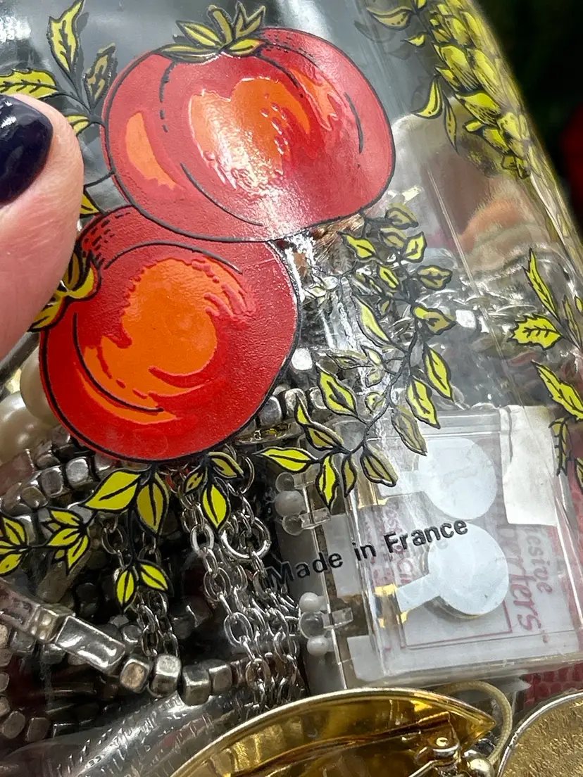 Notable Details: • Measures approximately 8 inches tall • Embossed Le Parfait mark on base • Marked “Made in France” on side • Bright, retro mushroom and tomato graphics in excellent condition • Original wire bale closure with orange rubber gasket • Filled with all wearable jewelry – vintage to modern pieces including necklaces, bracelets, earrings & more • Perfect as a collectible display jar or jewelry surprise gift