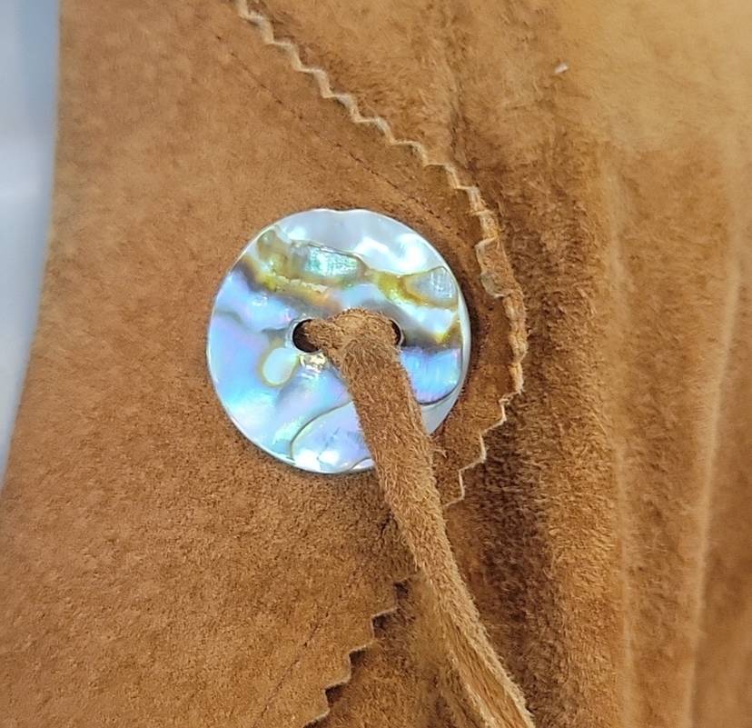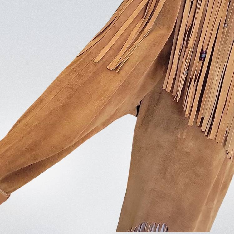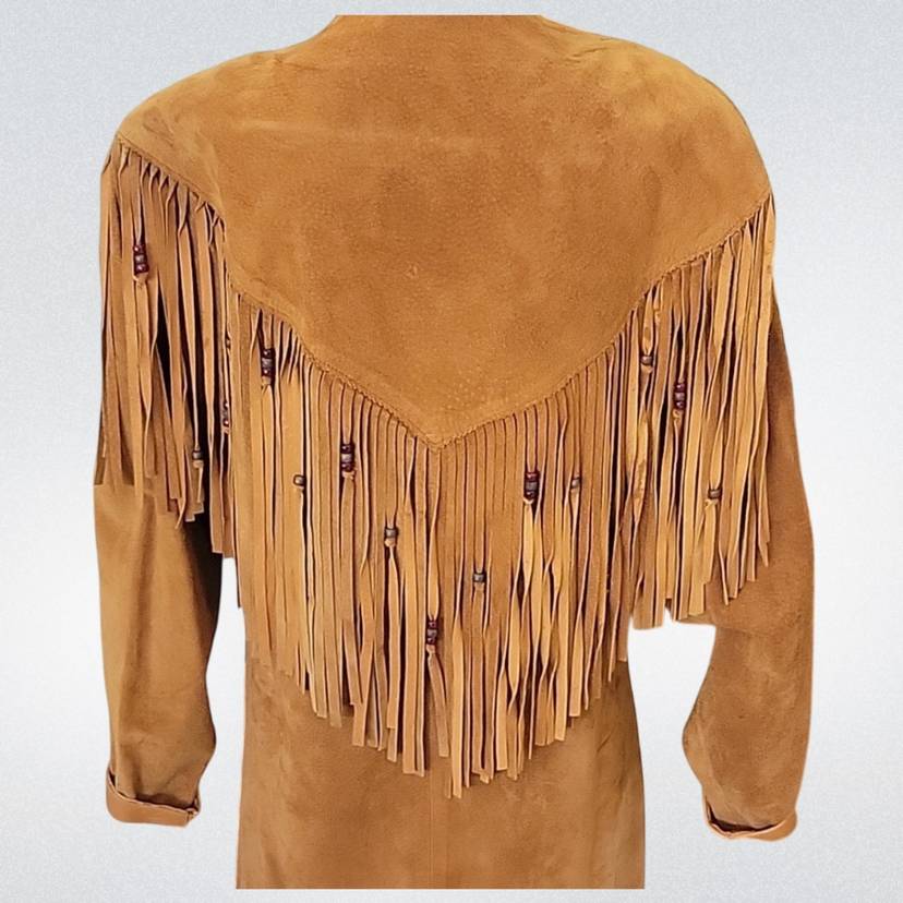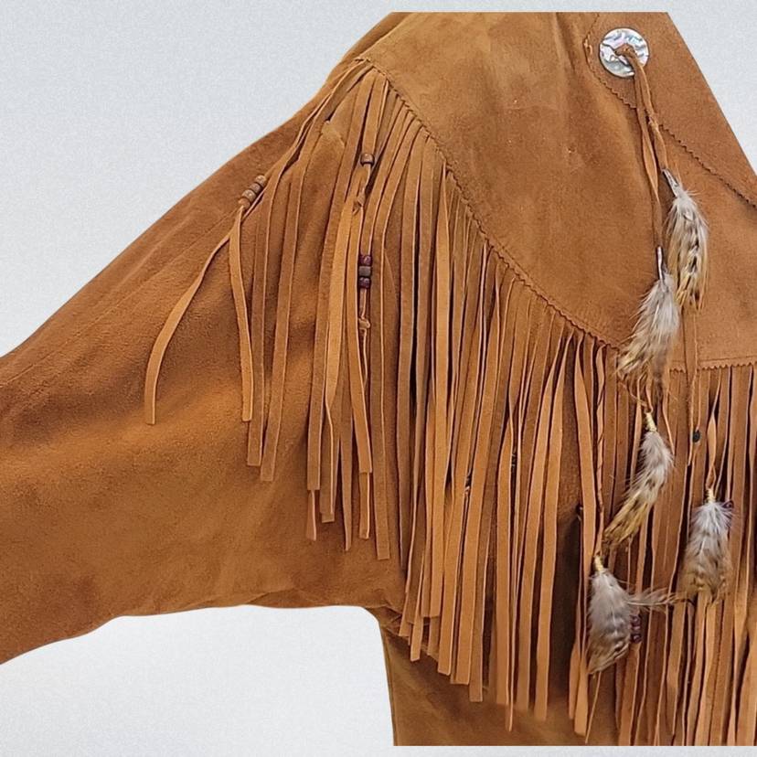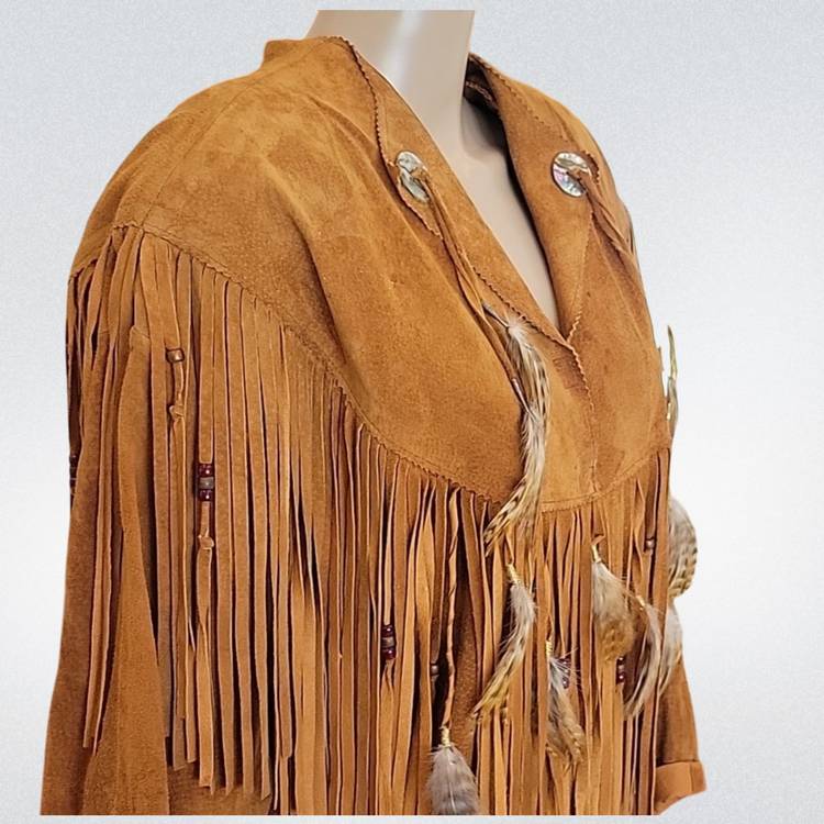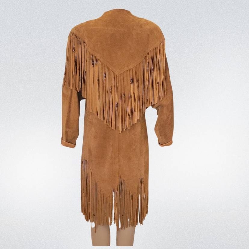 Vtg Suede Leather Fringe, feathers & beads. Western Native American Pullover Dress from late 70's Pre-owned, vintage, does have one area of light spots. see pictures No holes or stiffness in the leather Approx measurements laying flat: 22" pit to pit 19 " shoulder to shoulder 43" total length 21" sleeves
