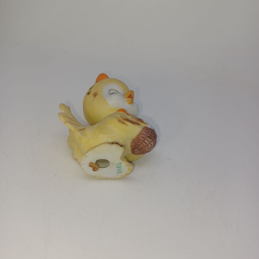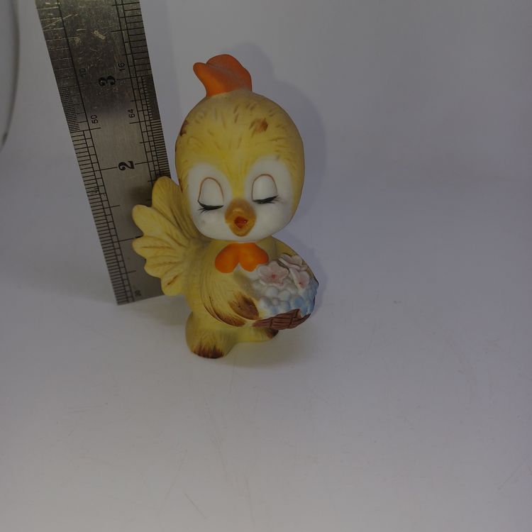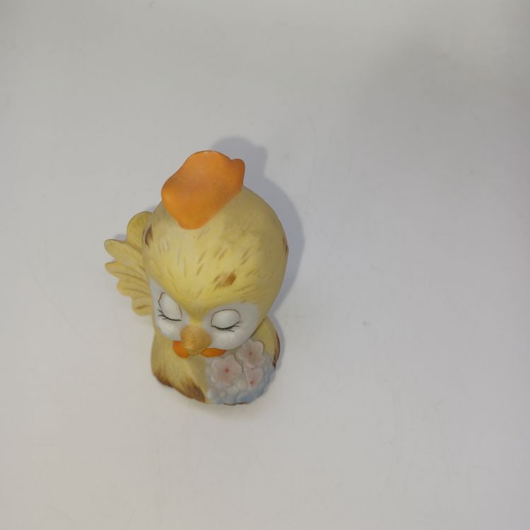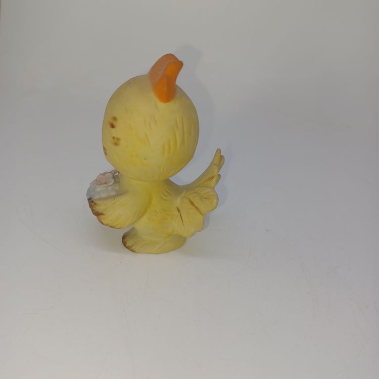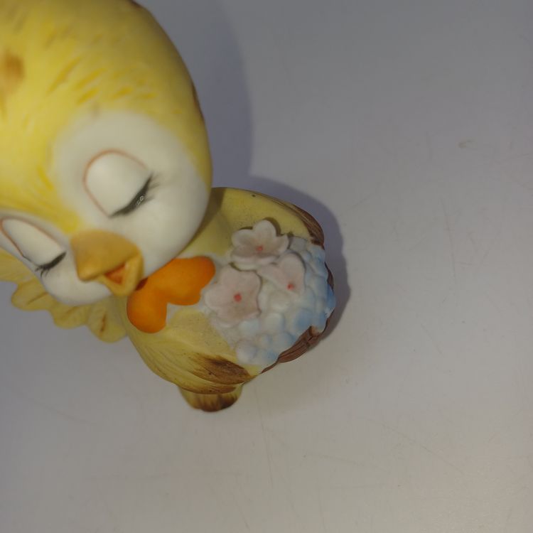 Vintage Lefton Figurine Yellow Ceramic 3” Chick With Flower Basket #7991 In good vintage condition does have number 7991 on the bottom one of the flowers is broken in half not really that evident doesn't just really detract from use or display please see all pictures as they are the best description all items from a smoke-free home with pets experienced fragile shipper