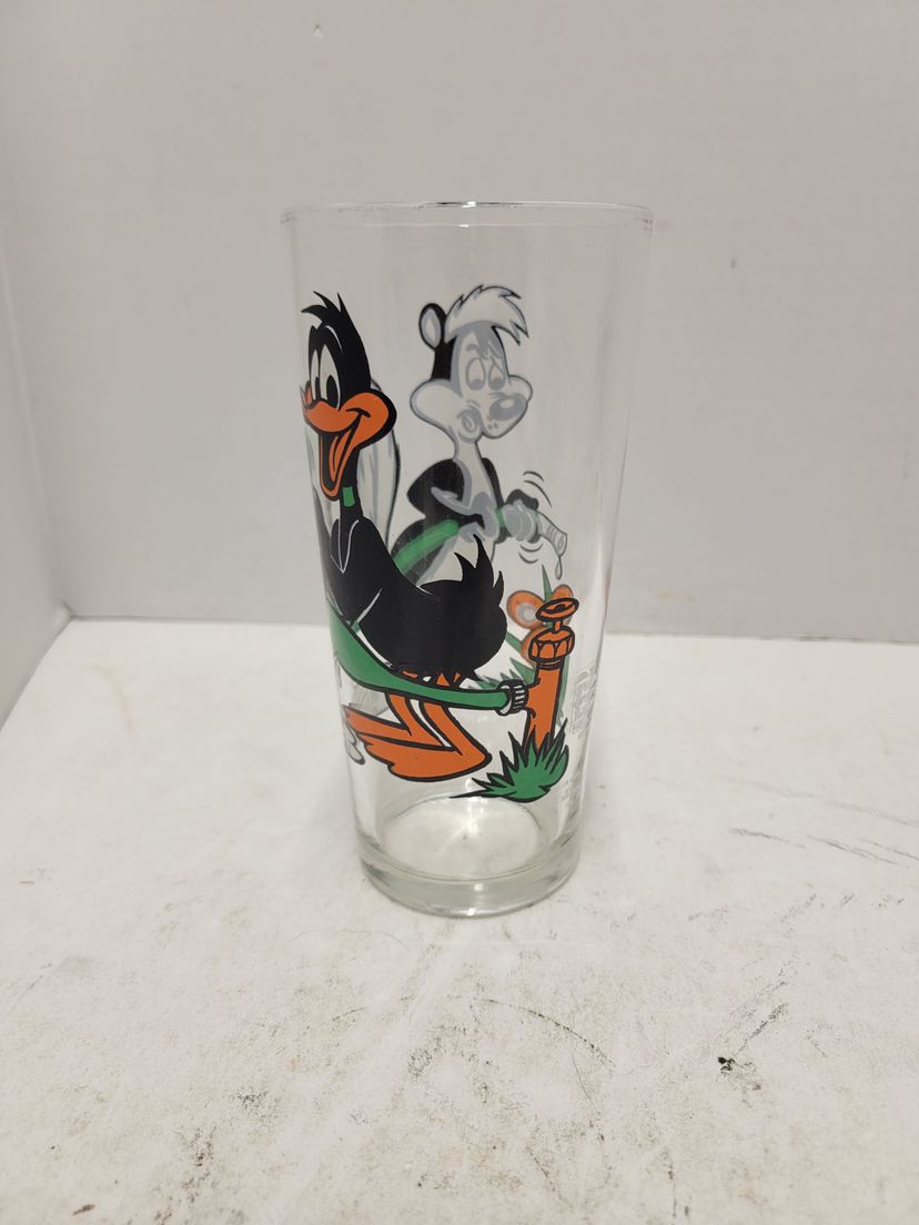 Vintage Looney Tunes 1976 Pepsi Glass Featuring Daffy Duck and Pepe Le Pew!