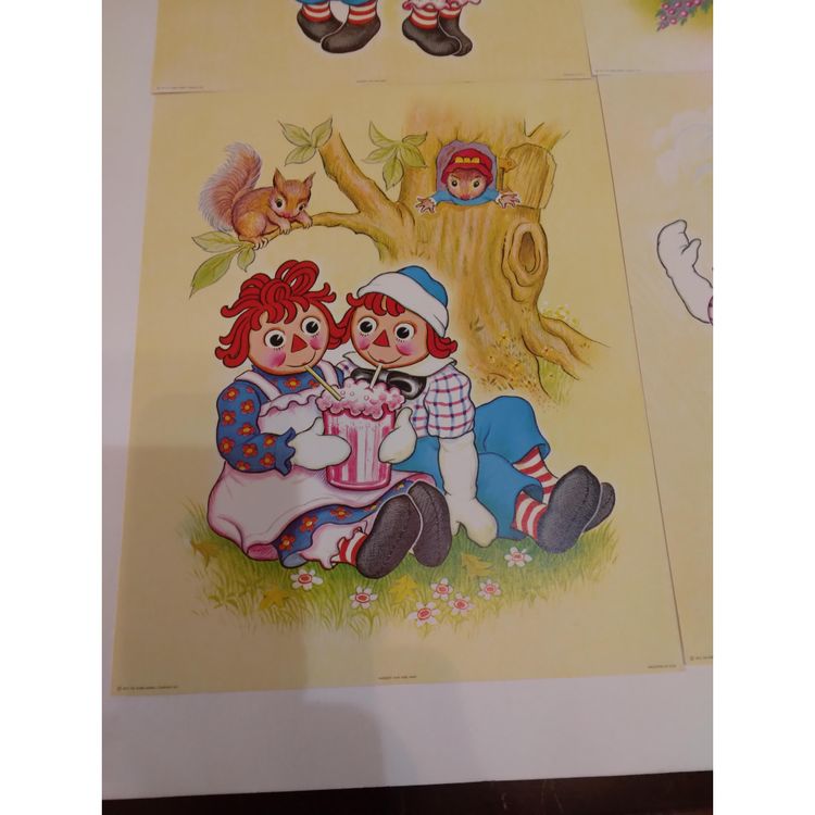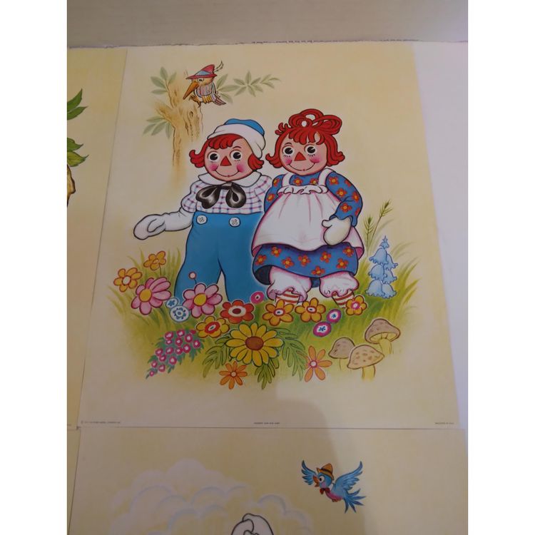 Vintage Lot of 1973 Bobbs Merrill Co. Raggedy Ann and Andy Approx. 8X10 Prints Set of 6. No stains, tears or odd odors. They are in super condition. There are 2 duplicates. They are not yellowed. That is how they were made. Please see photos. I am a careful and experienced shipper.