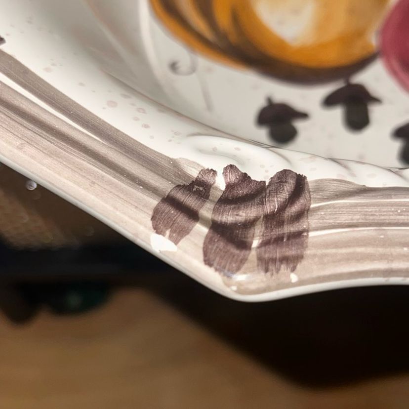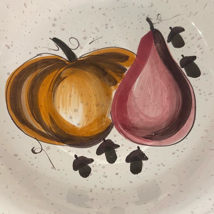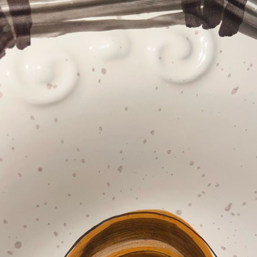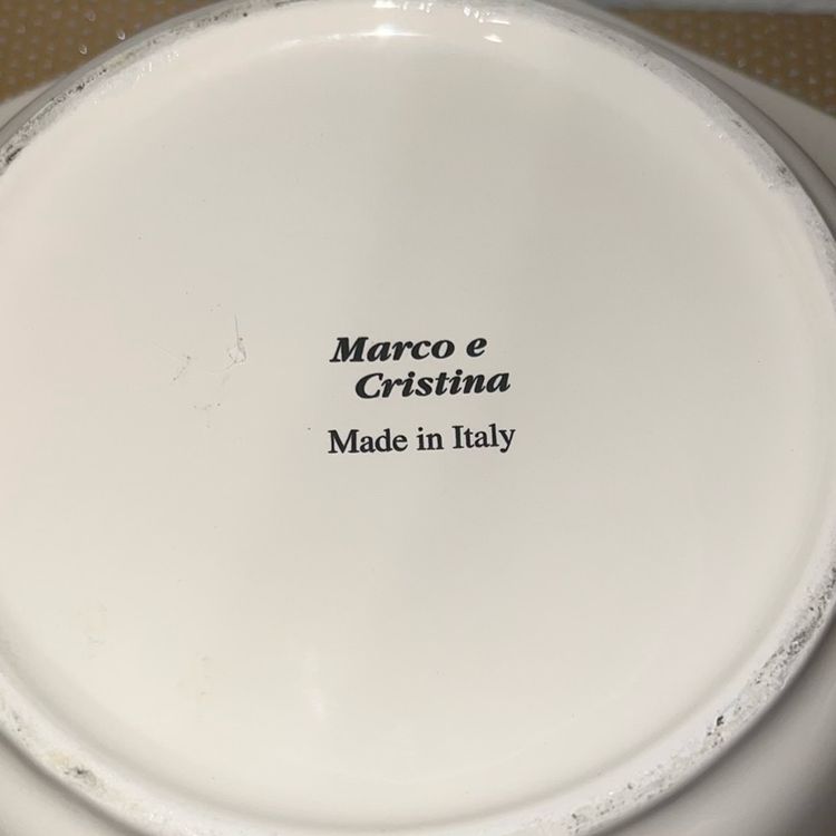 Large decorative bowl. Made in Italy. 12"W x 4"D. One tiny chip. Embossed swirls along inside edge of bowl.