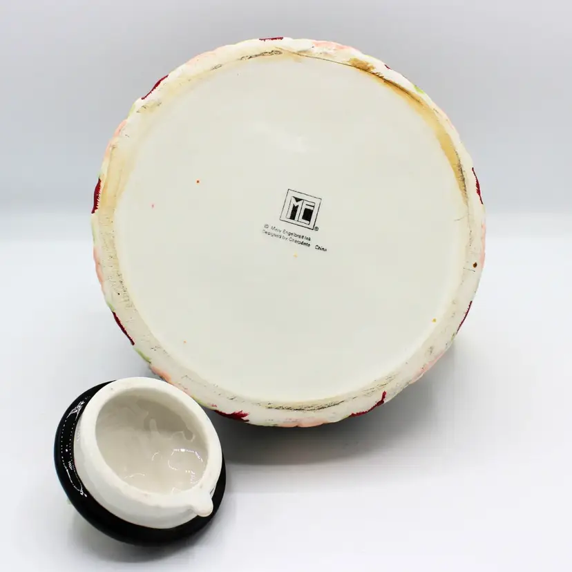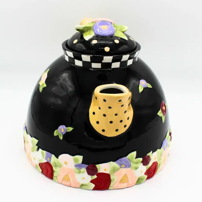 Vintage Mary Engelbreit Cottage Rose Black Ceramic Teapot – Decorative Country Garden Decor