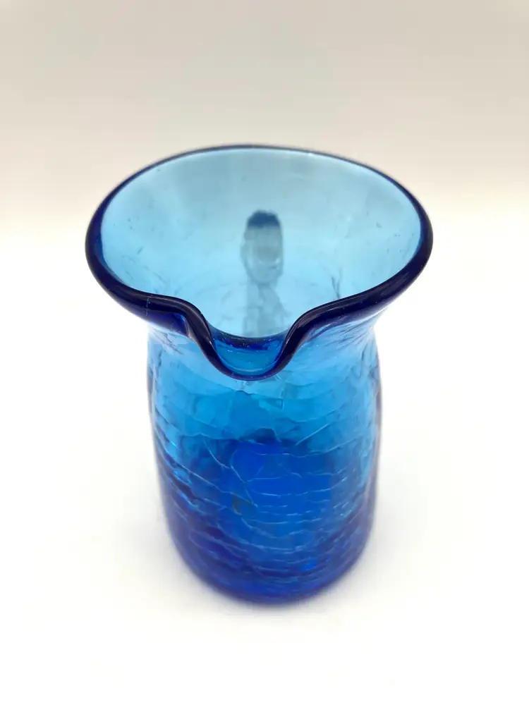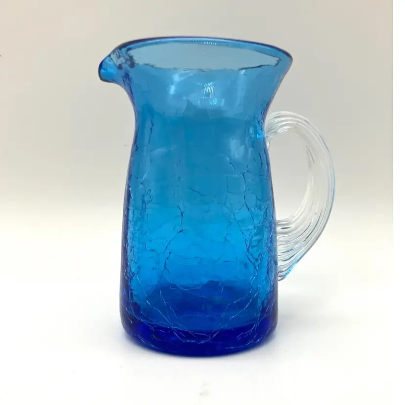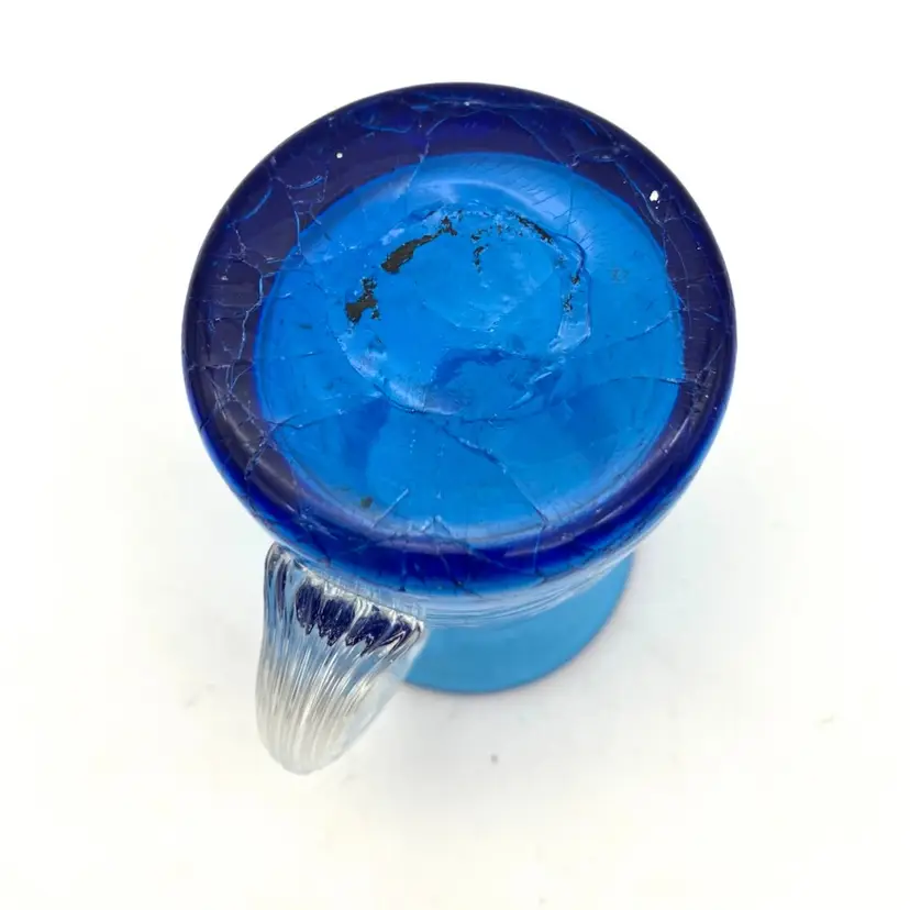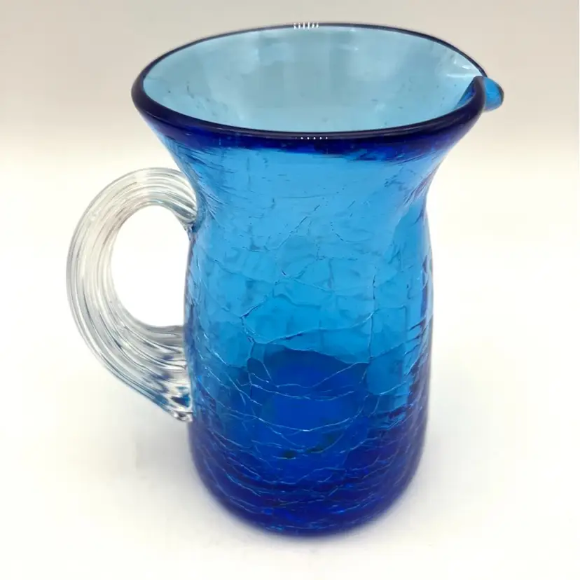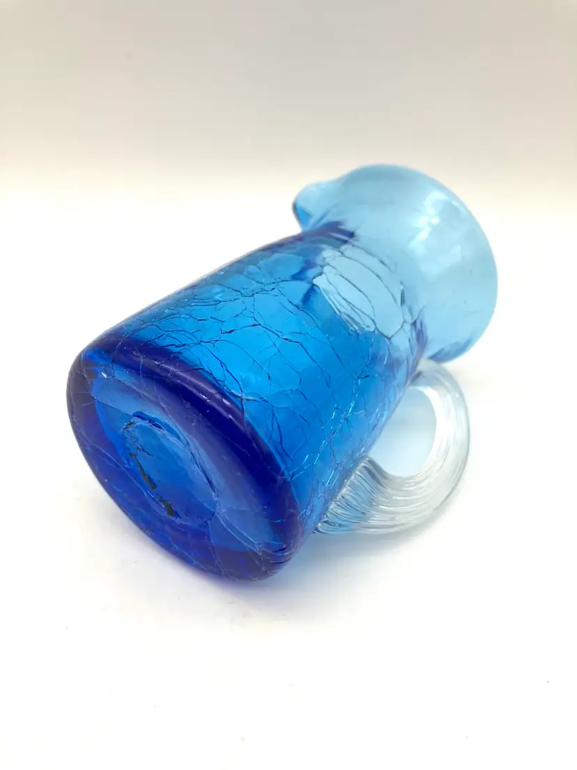 Measures 3.5” tall x 2.25” diameter and 3.25” from spout to handle. Great condition. There is some ash residue on the underside around the Pontil that is included into the glass.