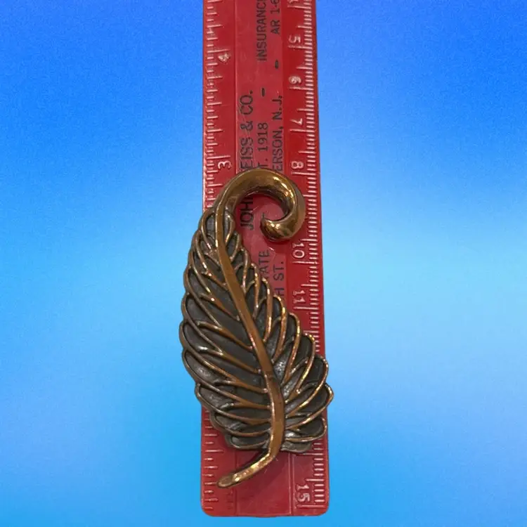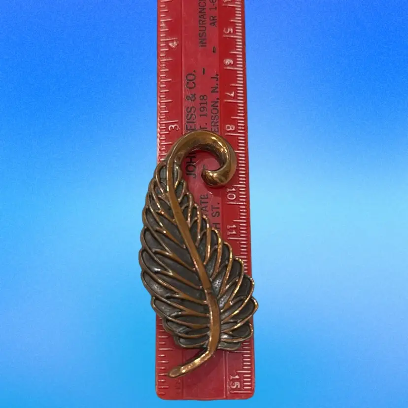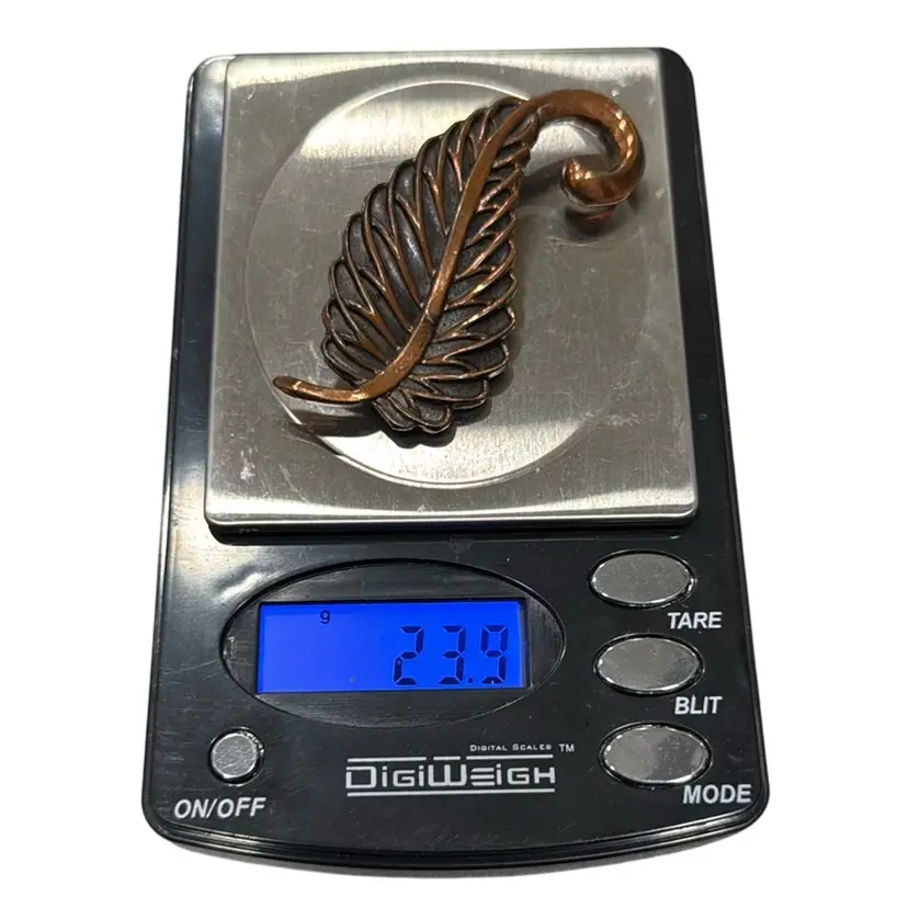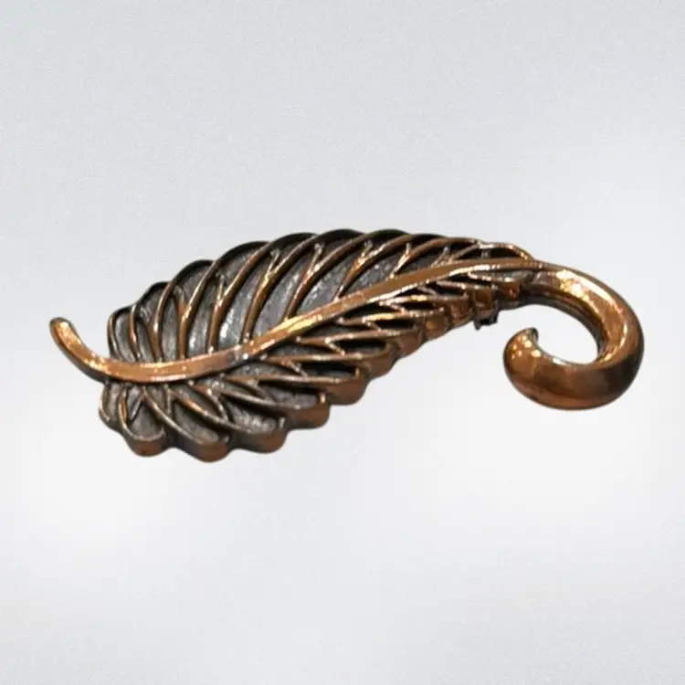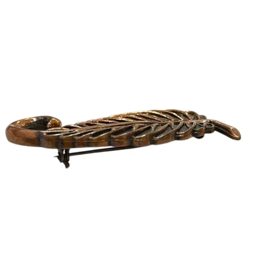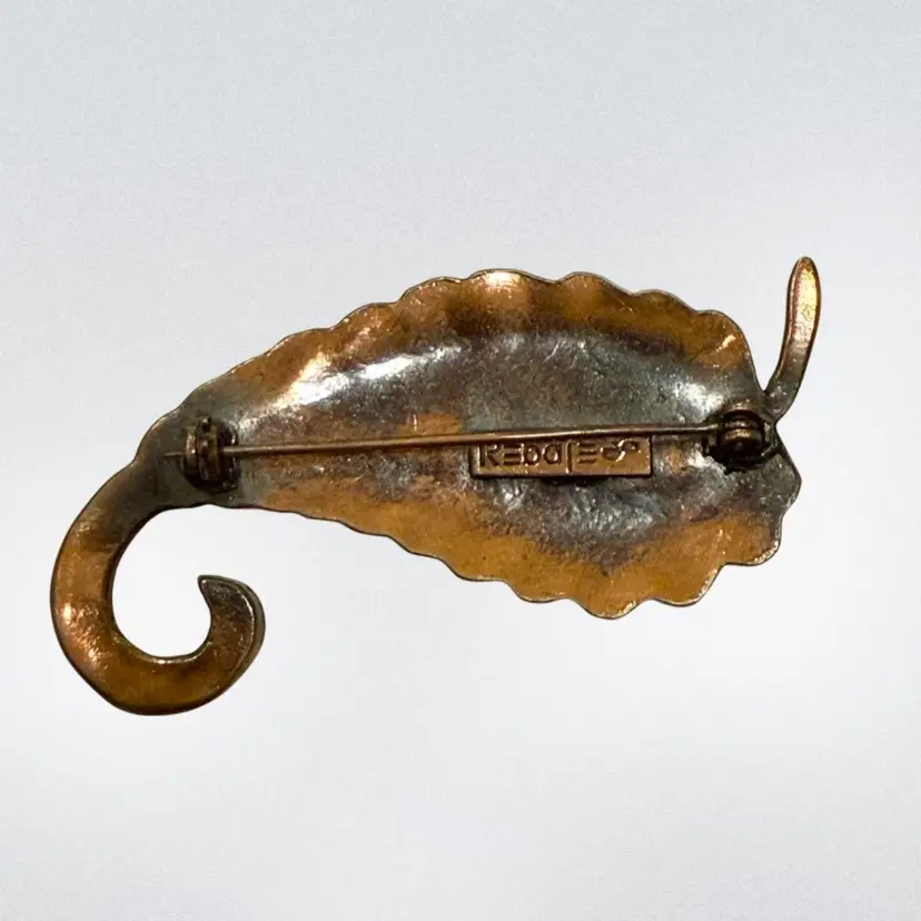 Francis Rebajes was a renowned Dominican born American modernist jewelry designer living in New York. This brooch dates to the mid century most probably the 1950’s-60’s. Brooch is very well made of thick solid copper weighing 23.9g. Measures 2.75”. Artist signed on the reverse side. Excellent vintage condition with minimal signs of wear.