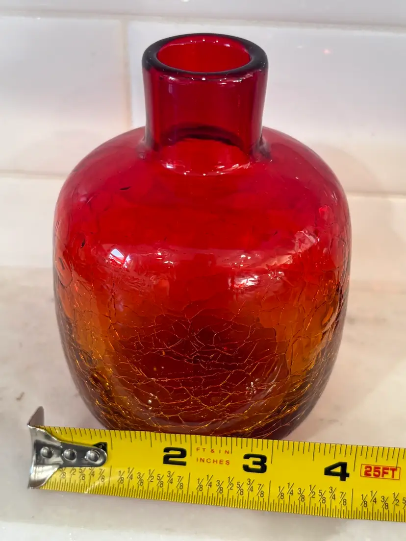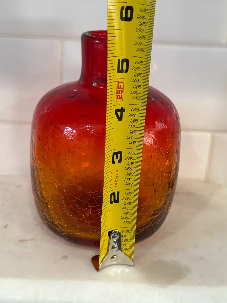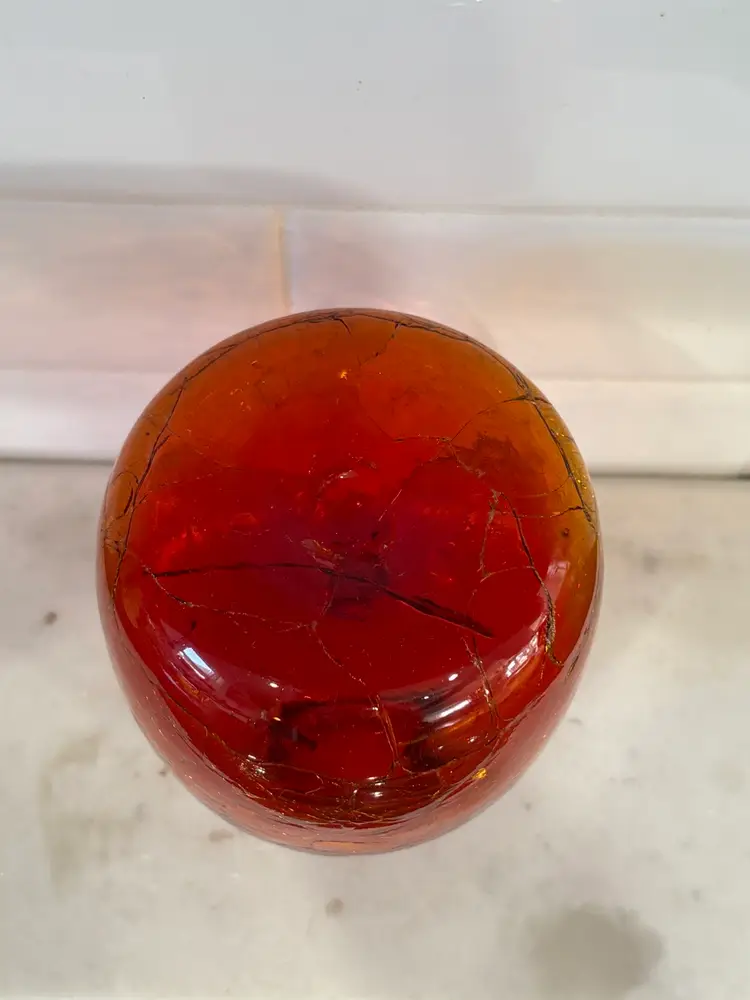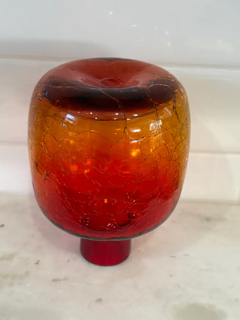 Vintage MCM Glass Candle Holder/ Vase Tangerine Crackle