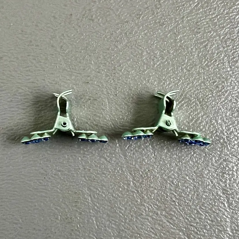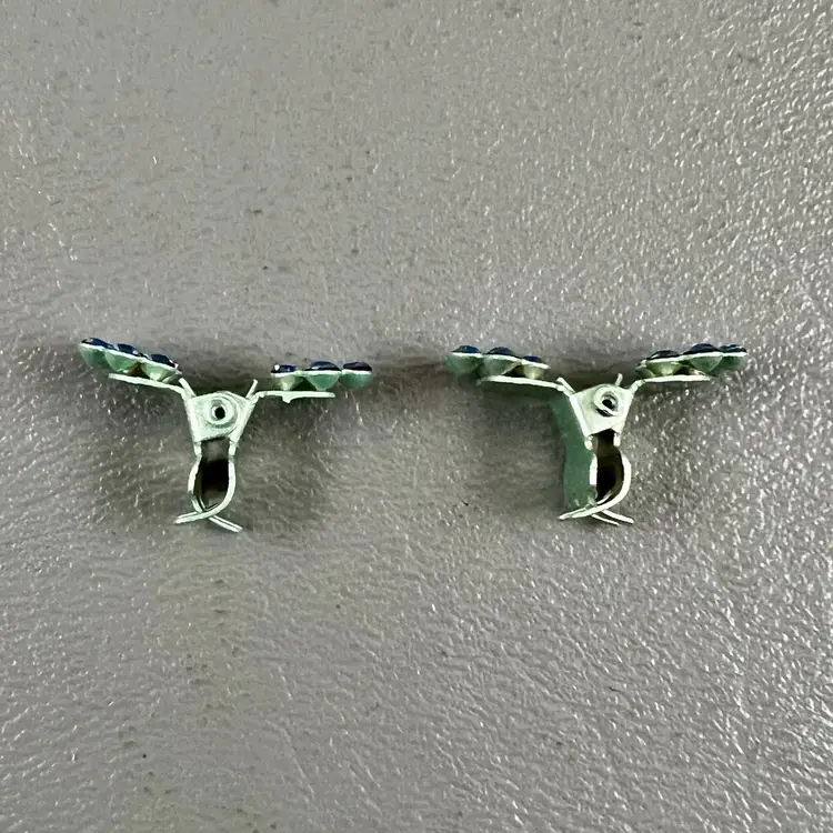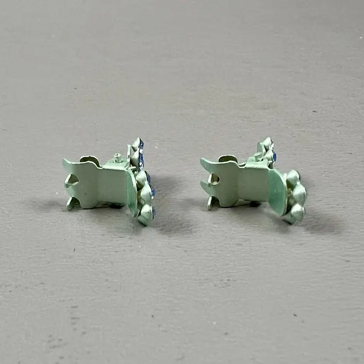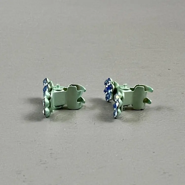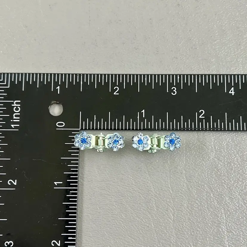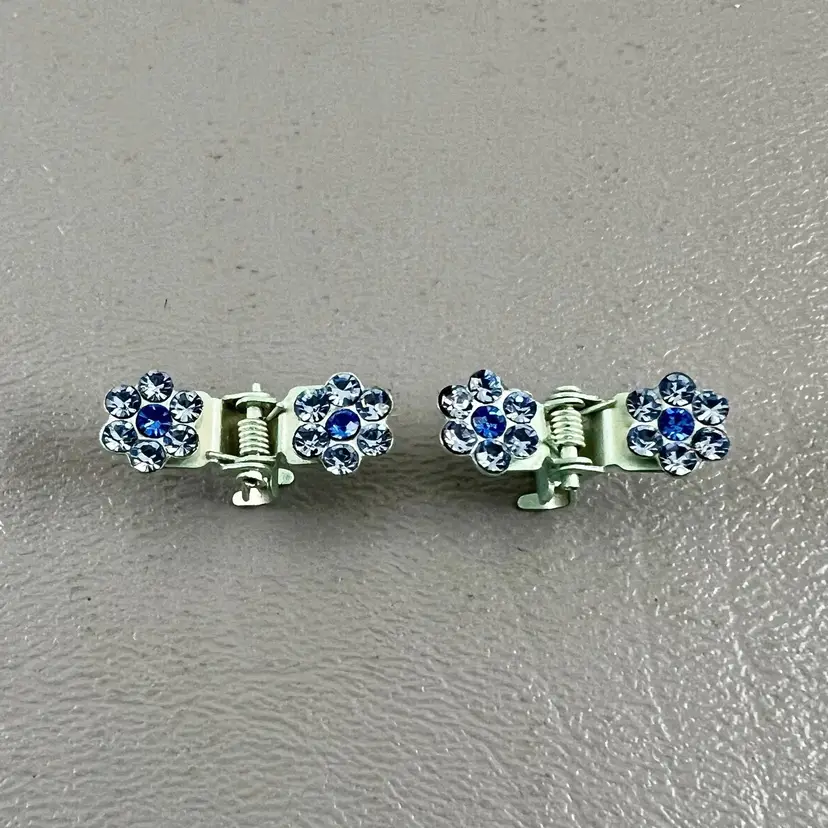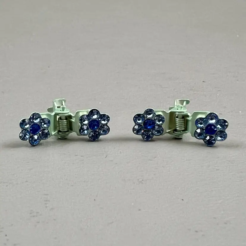 Vintage Metal Hair Clips With Blue Rhinestones Flowers Accessories Jaw Clip 3/4 Inch