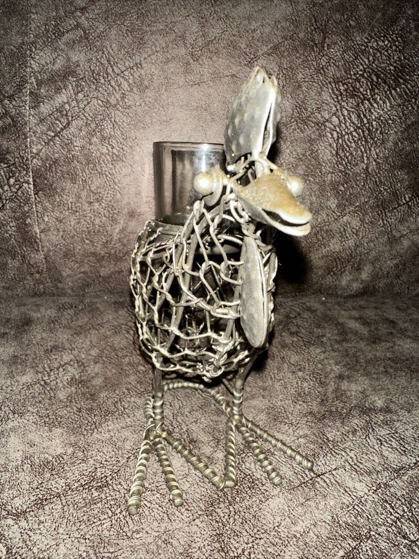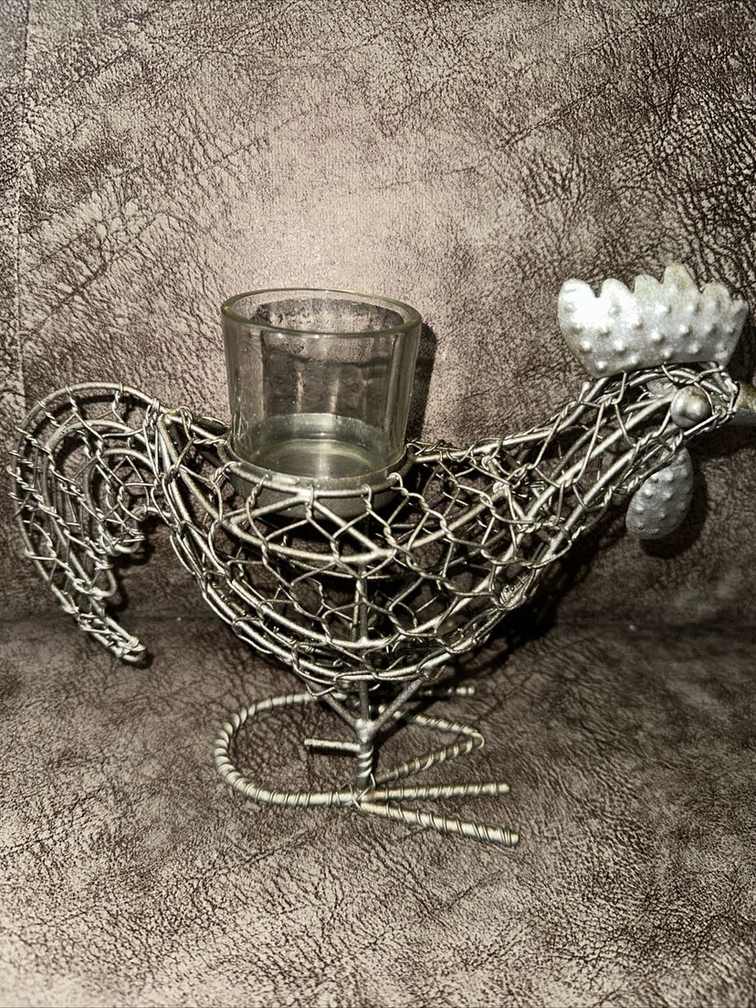 Vintage Metal Wire Woven Rooster Chicken Votive candle holder
