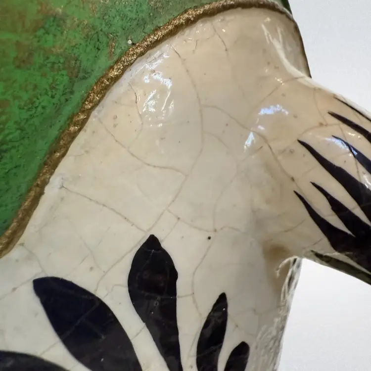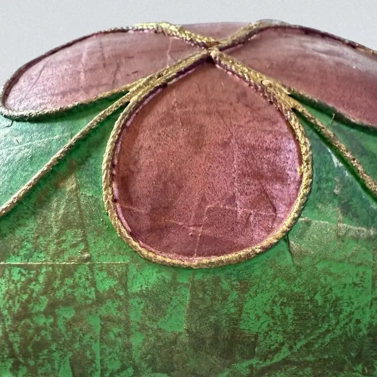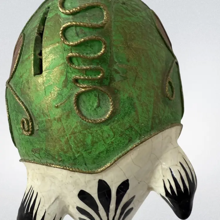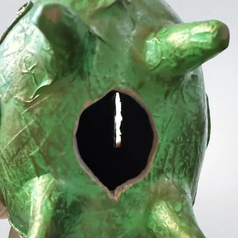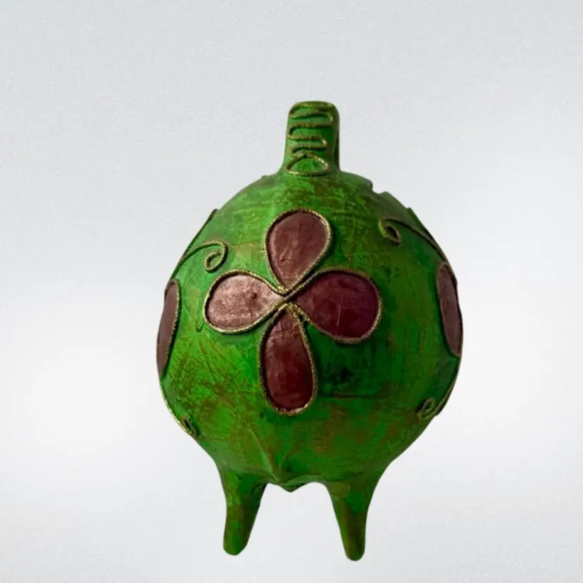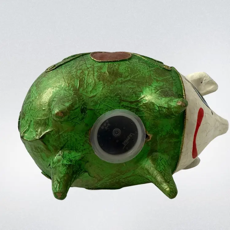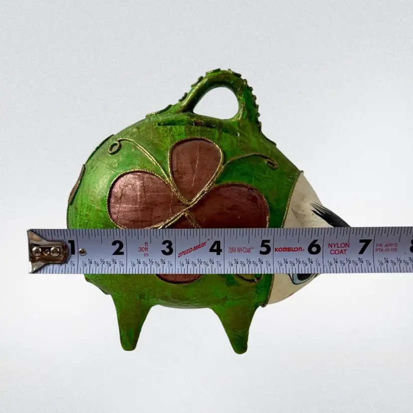 Vintage Mexican Ceramic Pottery Piggy Bank Hand Painted green paper•mache? Colorful and fun!