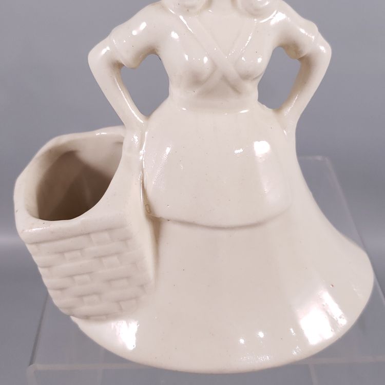 Vintage Mid Century DUTCH MILK MAID Basket White POTTERY PLANTER