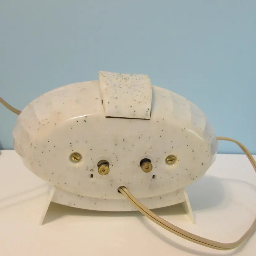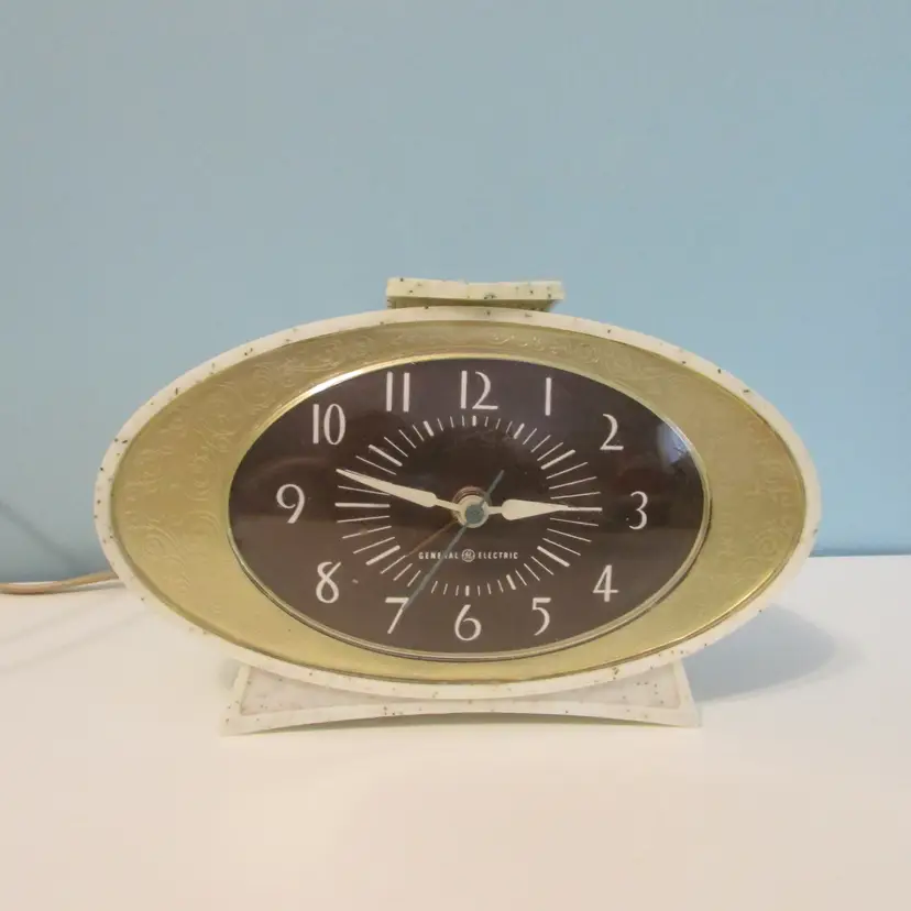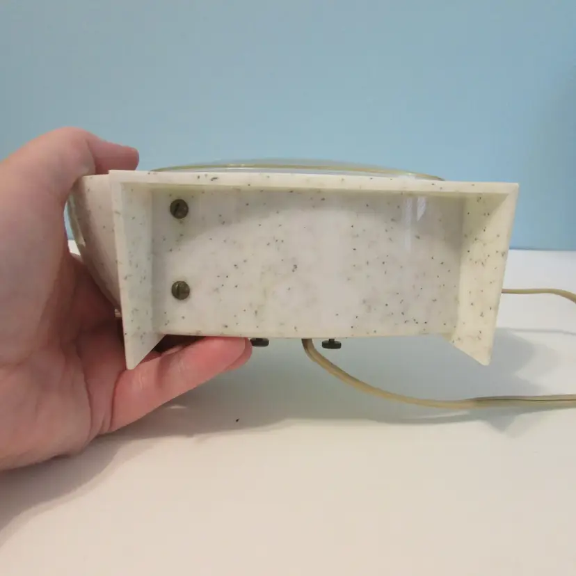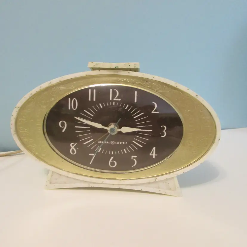 This lovely clock does work, but it heats up. I think it might need to be re-wired, but still a nice piece to display. It is about 4 1/2" x 8 1/4".